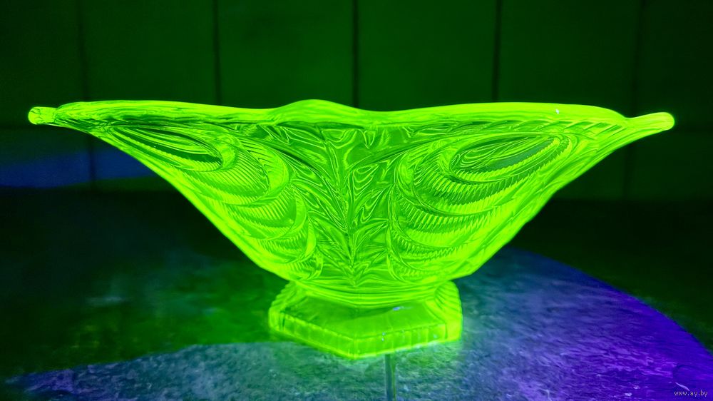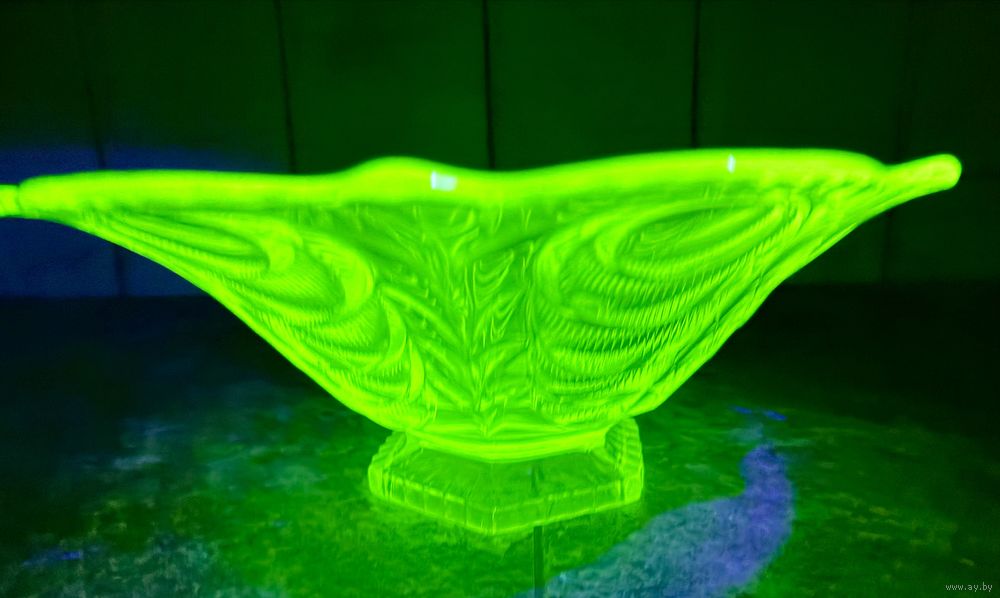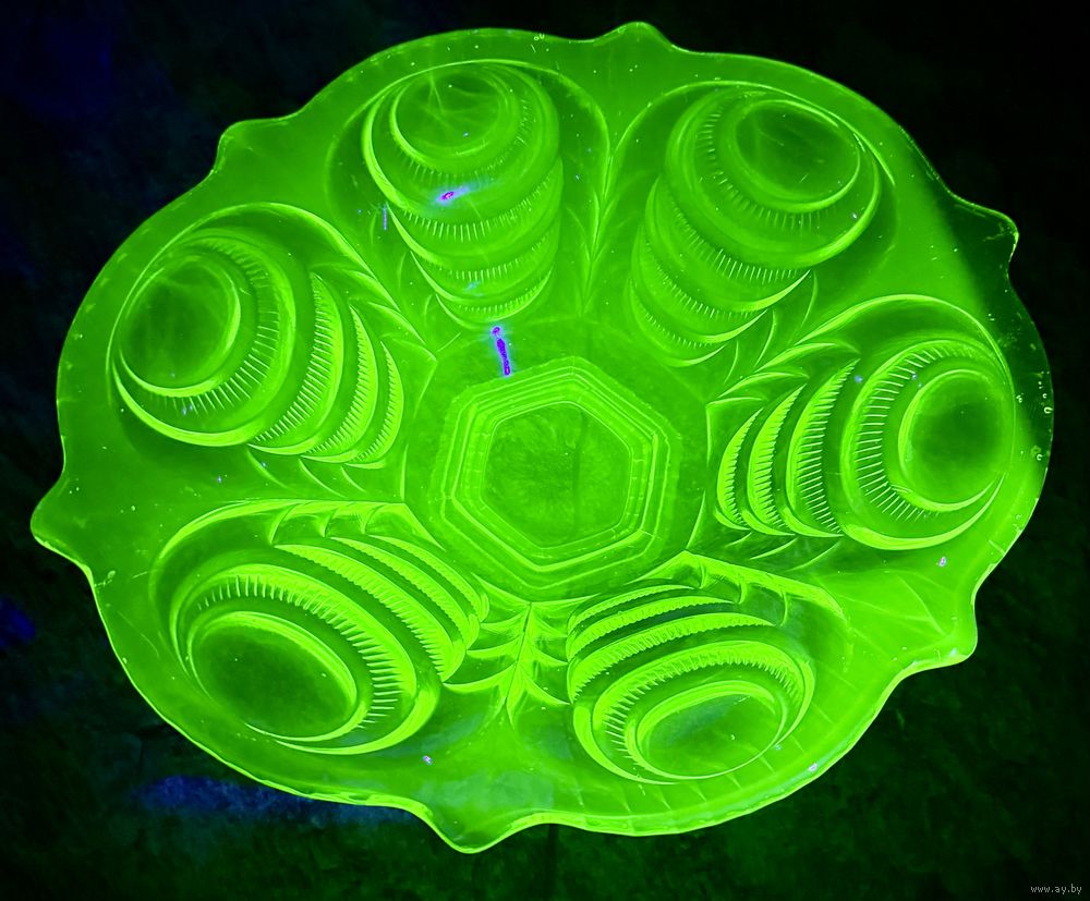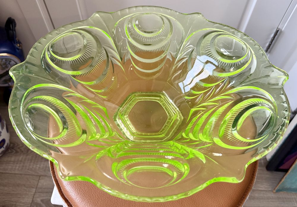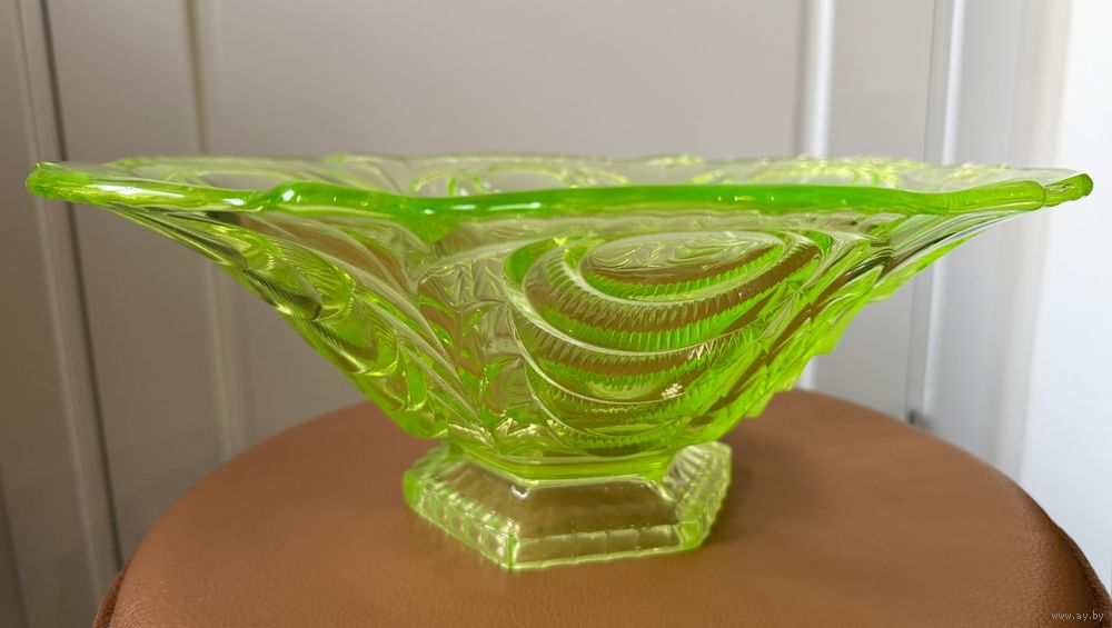 Большая ваза-Фруктовница из Уранового стекла Walther& Sohne 1930-50. В отличном состоянии размеры: 13/30/35см.