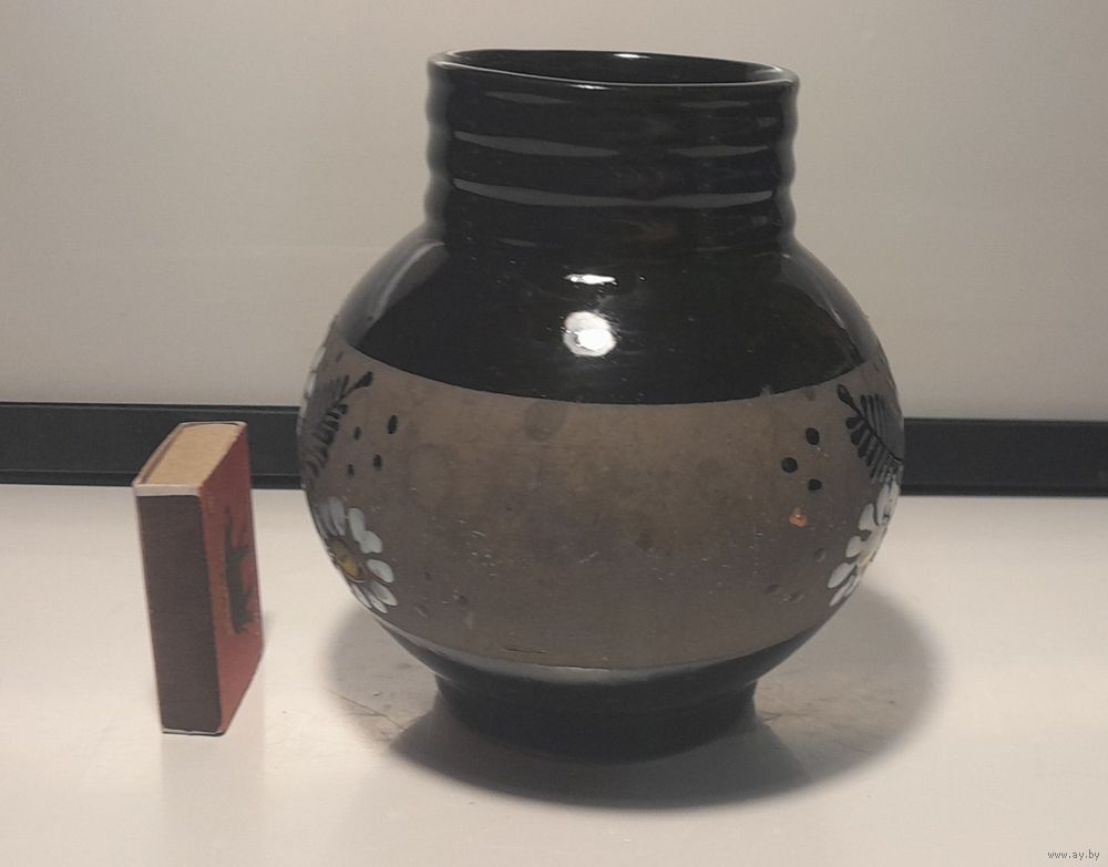 Ваза керамическая. Ручная роспись. Черная глазурь.