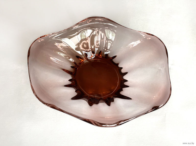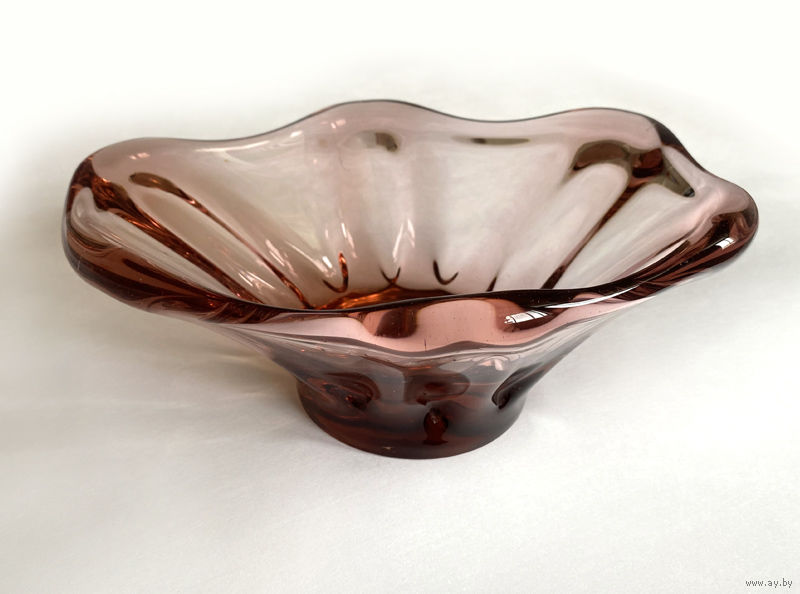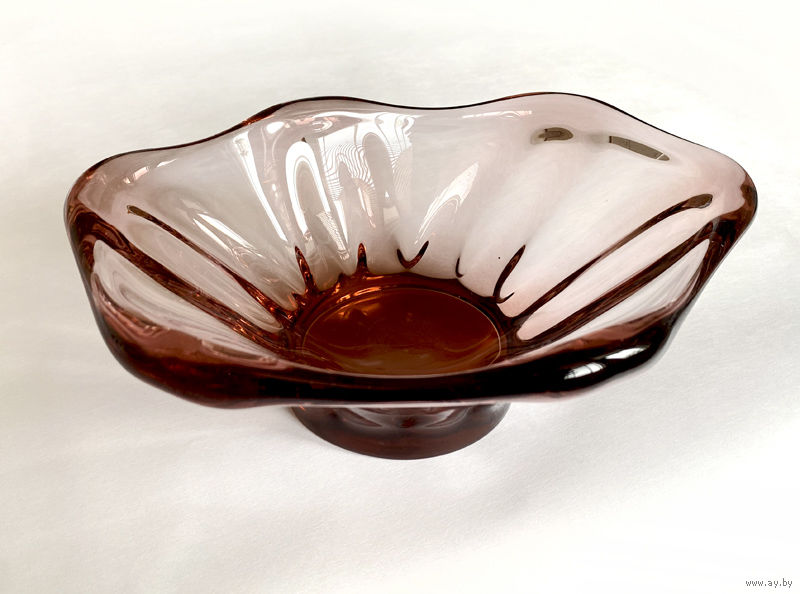 Ваза на ножке. Окрашенное стекло, гутная техника. 25х20 см, высота - 10 см. Состояние хорошее, без дефектов.