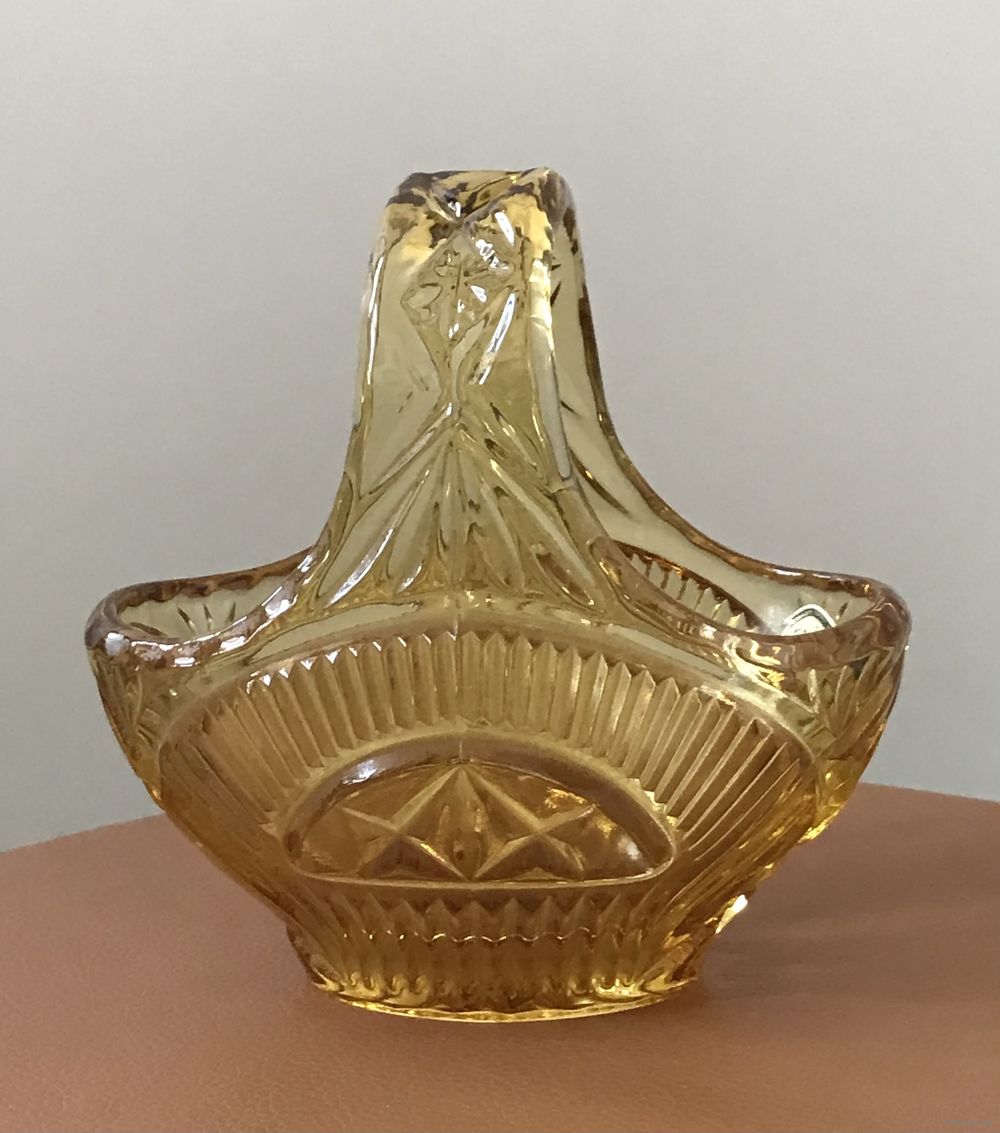 Винтажная вазочка (конфетница) в форме корзинки из стекла медового цвета. Чехословакия Богемия. Высота с ручкой 15см., длина 15см., ширина 9см., глубина 8,5см. Состояние хорошее.