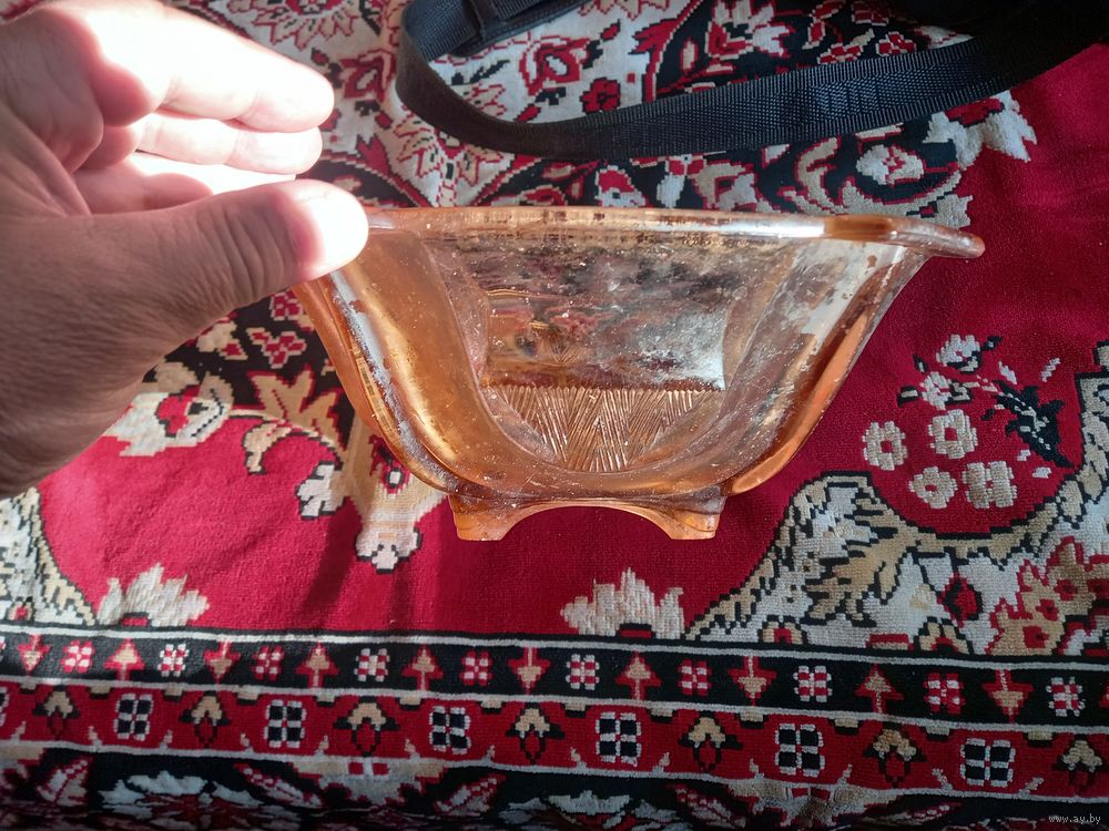 Ваза-конфетница, фруктовница большая на ножках НЁМАН СССР цветное стекло редкая