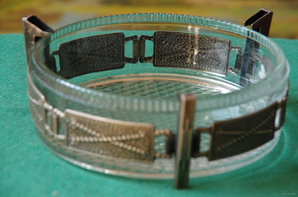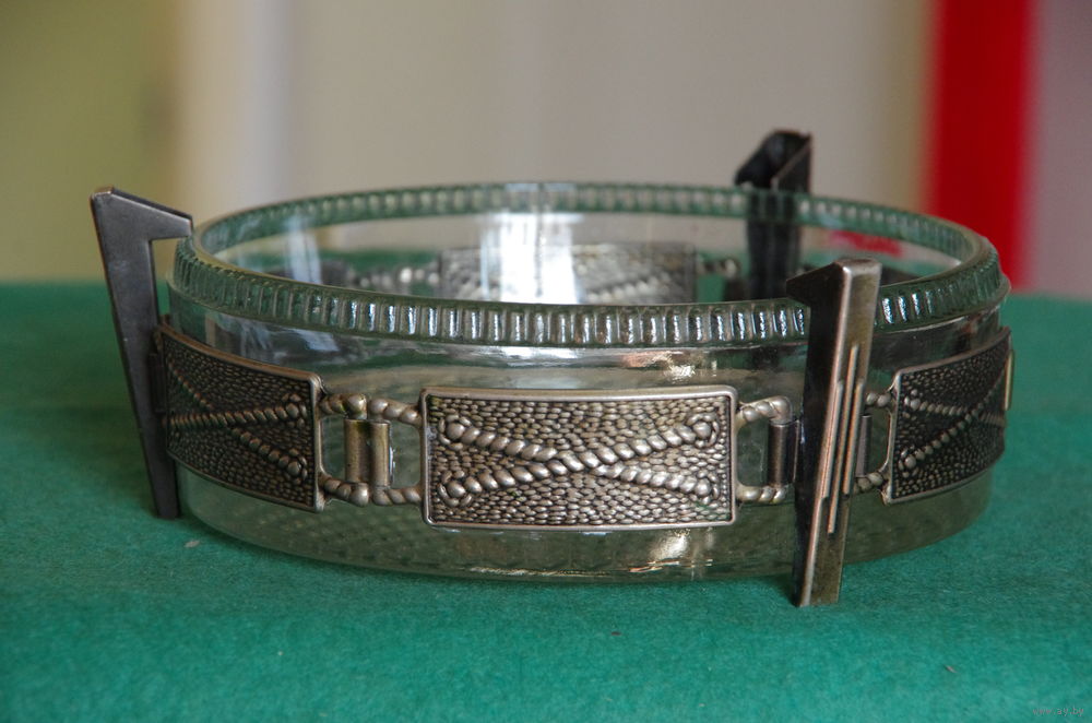 Ваза -конфетница стекло в мельхиоре диаметр 16 см , высота 6 см целая