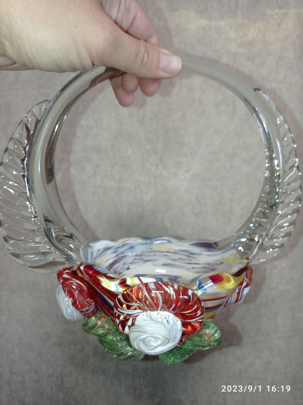 Очень необычная, фантазийная работа. Разноцветное выдувное стекло. Ширина 22, высота 21 см.