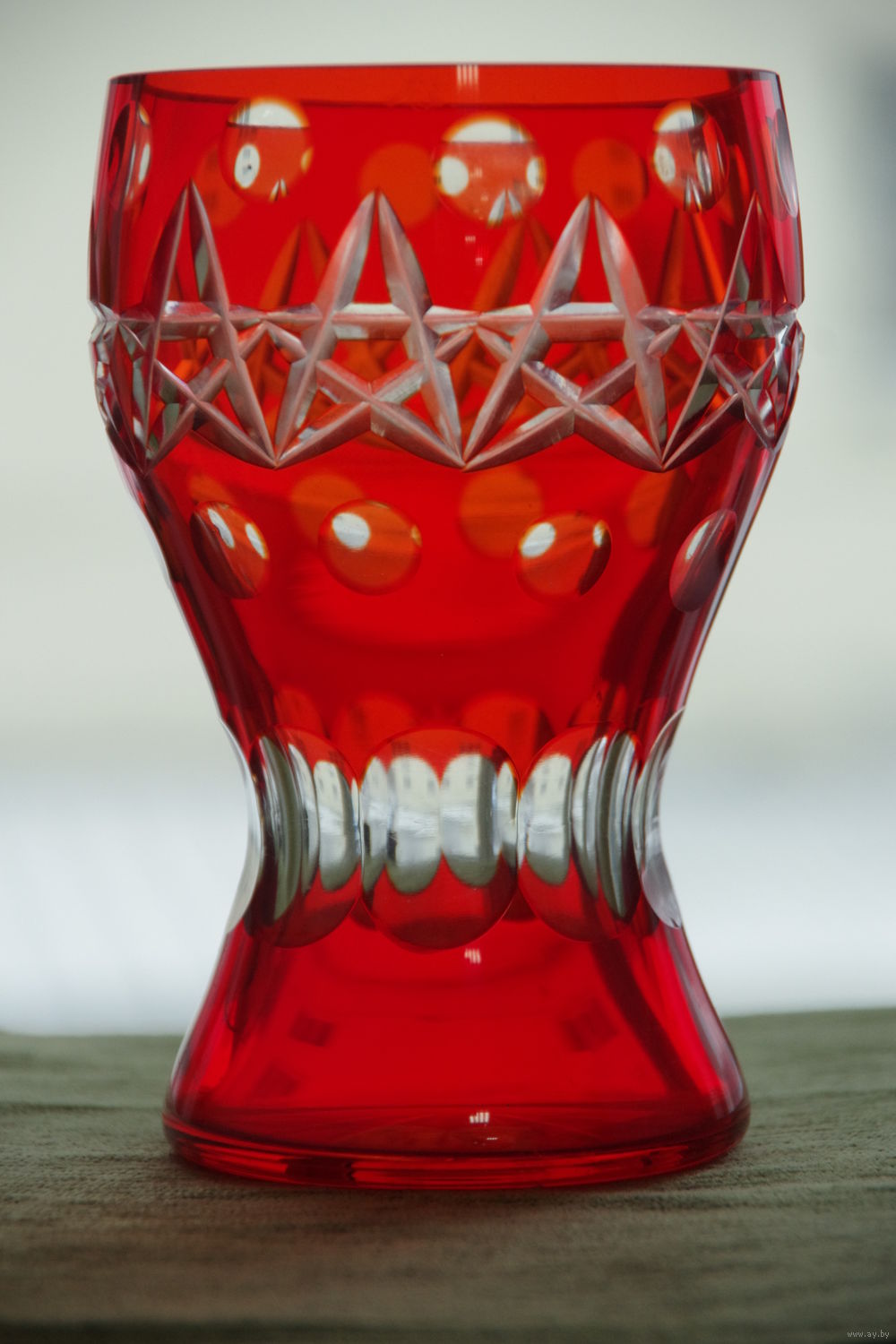 Ваза красное стекло ( высота 17,5 см , диаметр 10,5 см ) целая