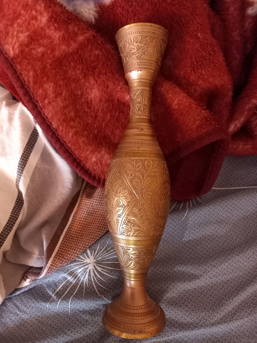 Ваза латунная с гравировкой 34 см. красивый антураж