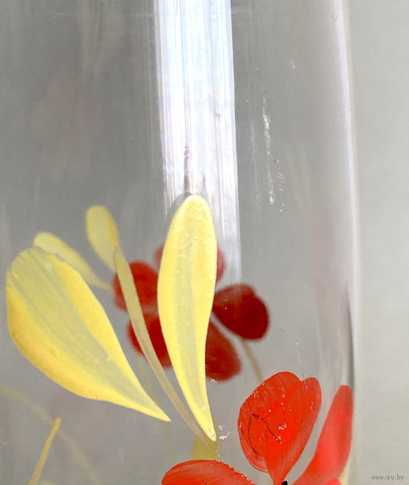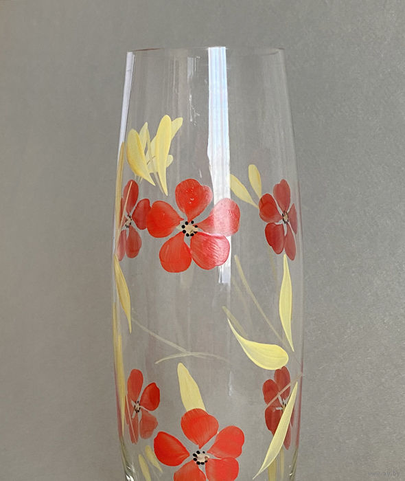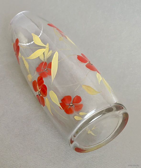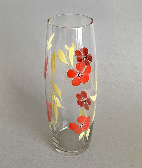 Ваза "Луговые цветы" советских времён. Стекло, краска, ручная роспись. Высота 25 см. Без сколов и трещин. Есть царапина (последнее фото).