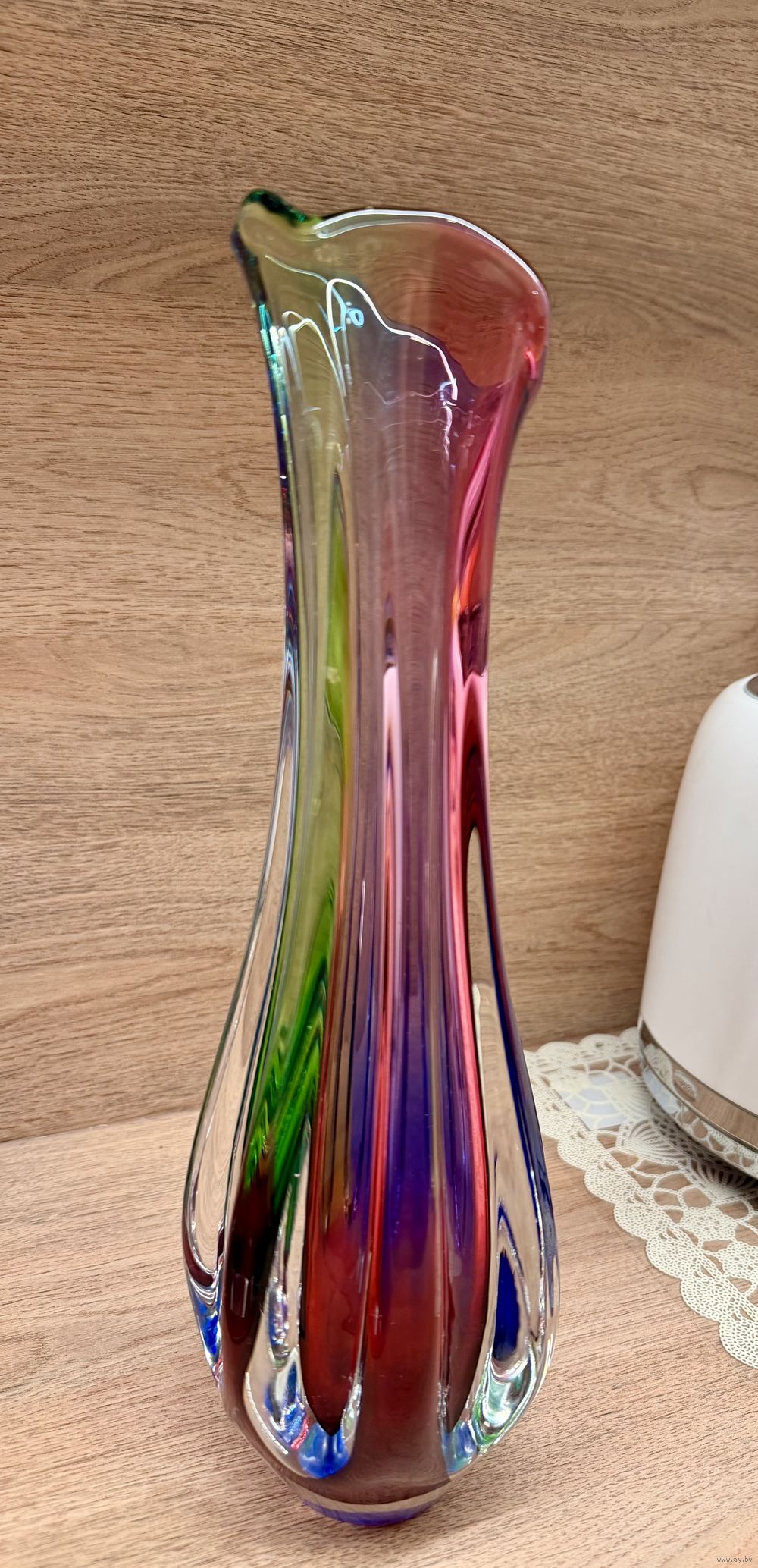 Ваза гутное стекло высота 32см автор П.И.Зитченко ЛЗХС 1960х