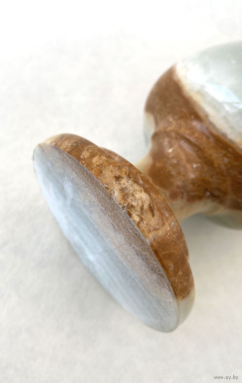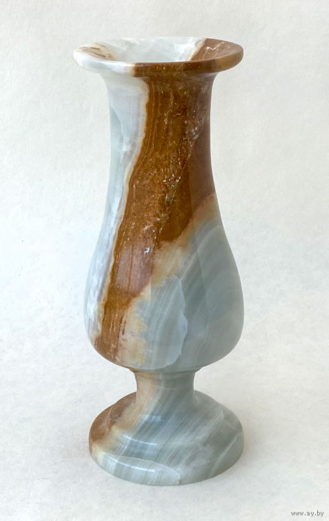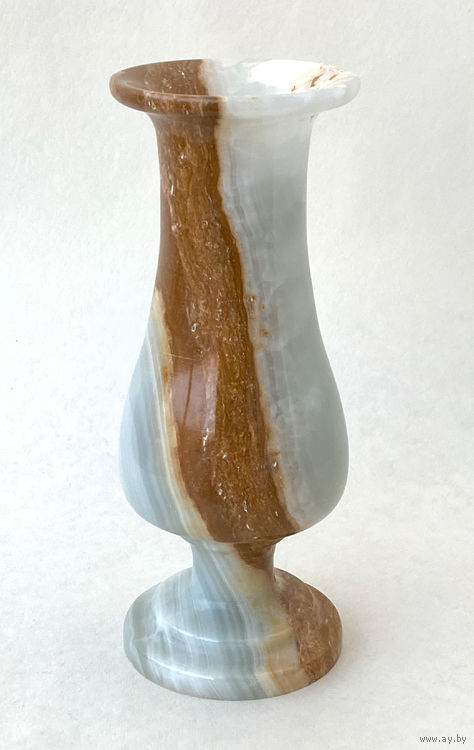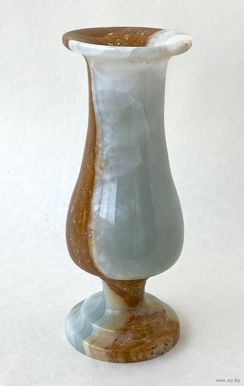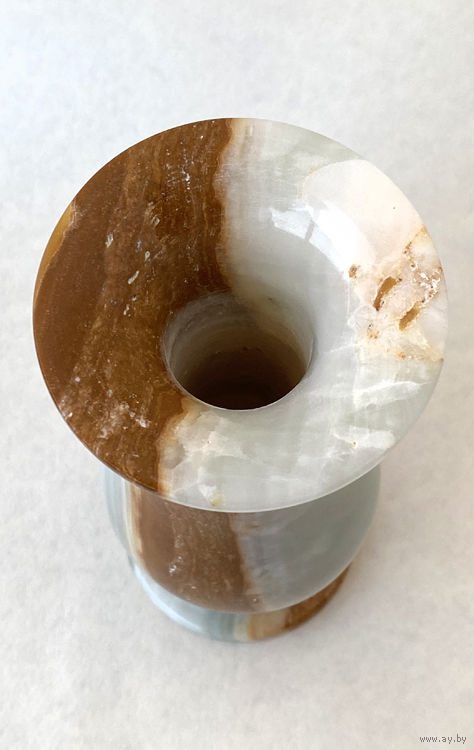 Ваза из натурального камня: Мраморный Оникс. Пакистан. Высота 19,5 см, диаметр горлышка 7,5 см. Состояние хорошее, есть малозаметные сколы у основания вазы (см. фото)