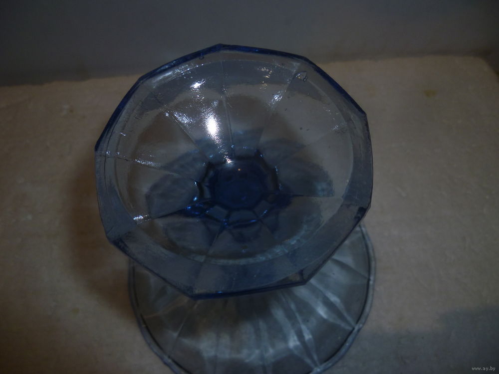 Ваза На Ножке 30-ые Европа. Синее Стекло