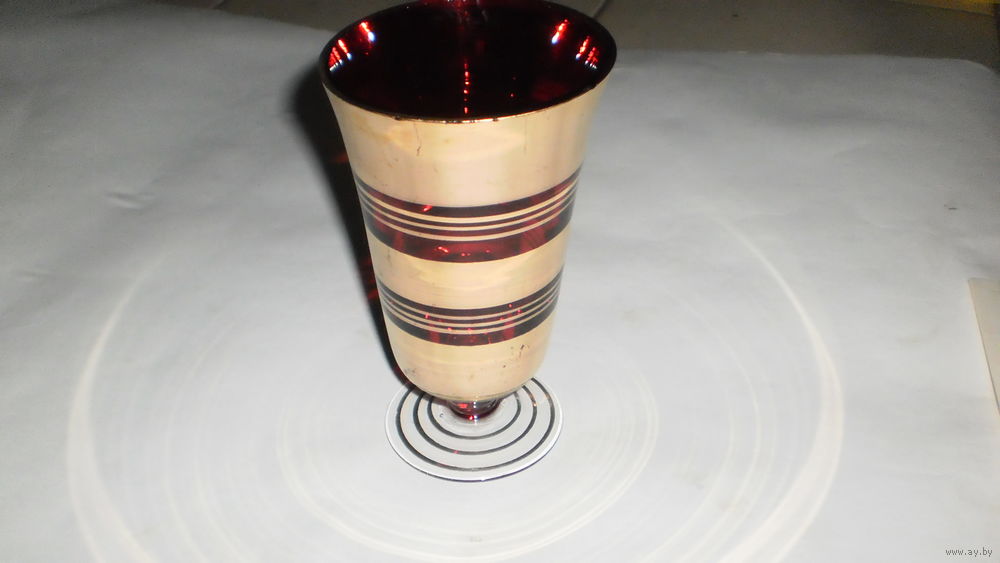 Ваза на ножке, красное стекло, позолота. 50-ые г.