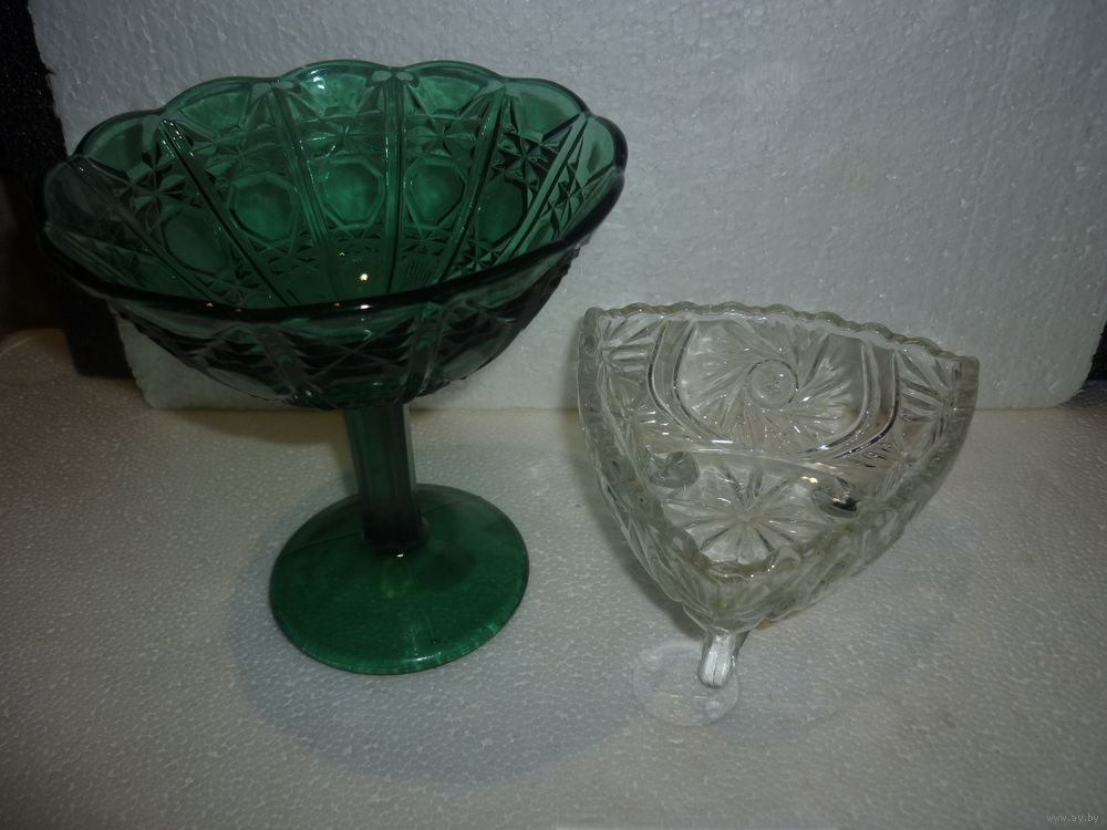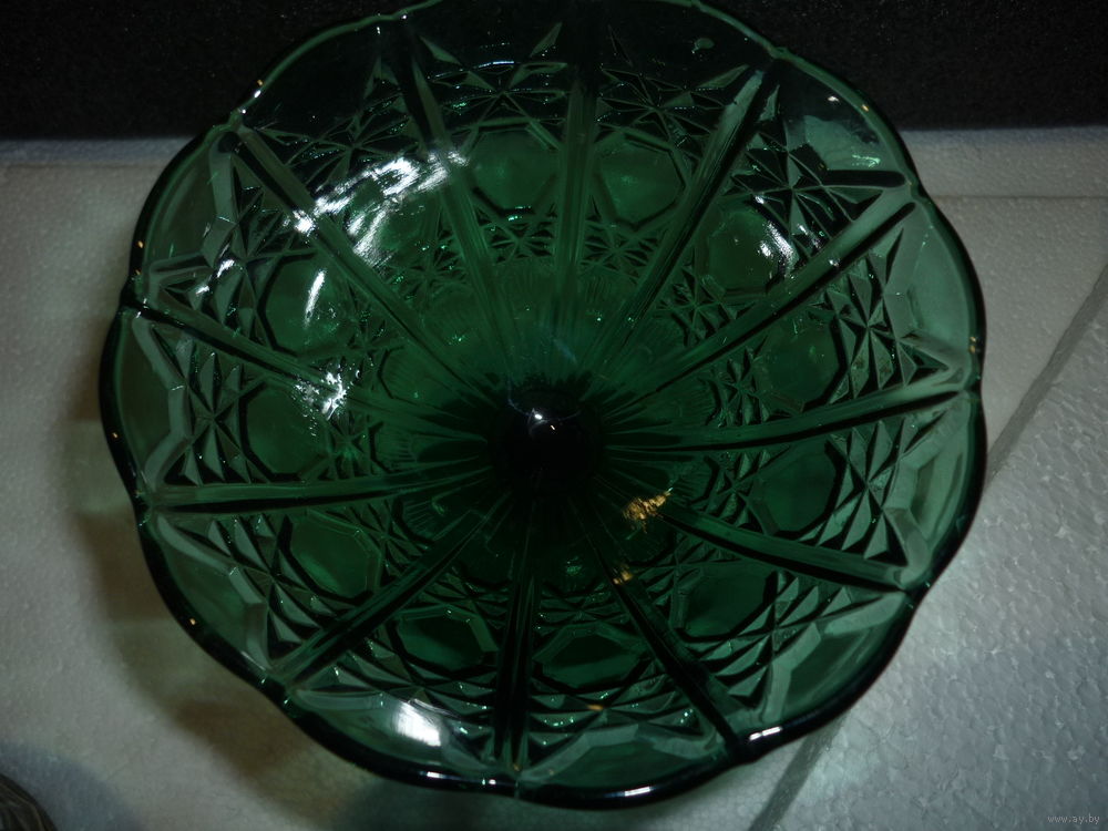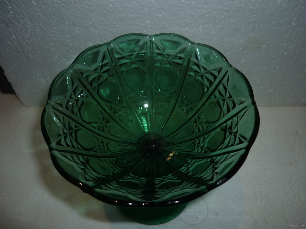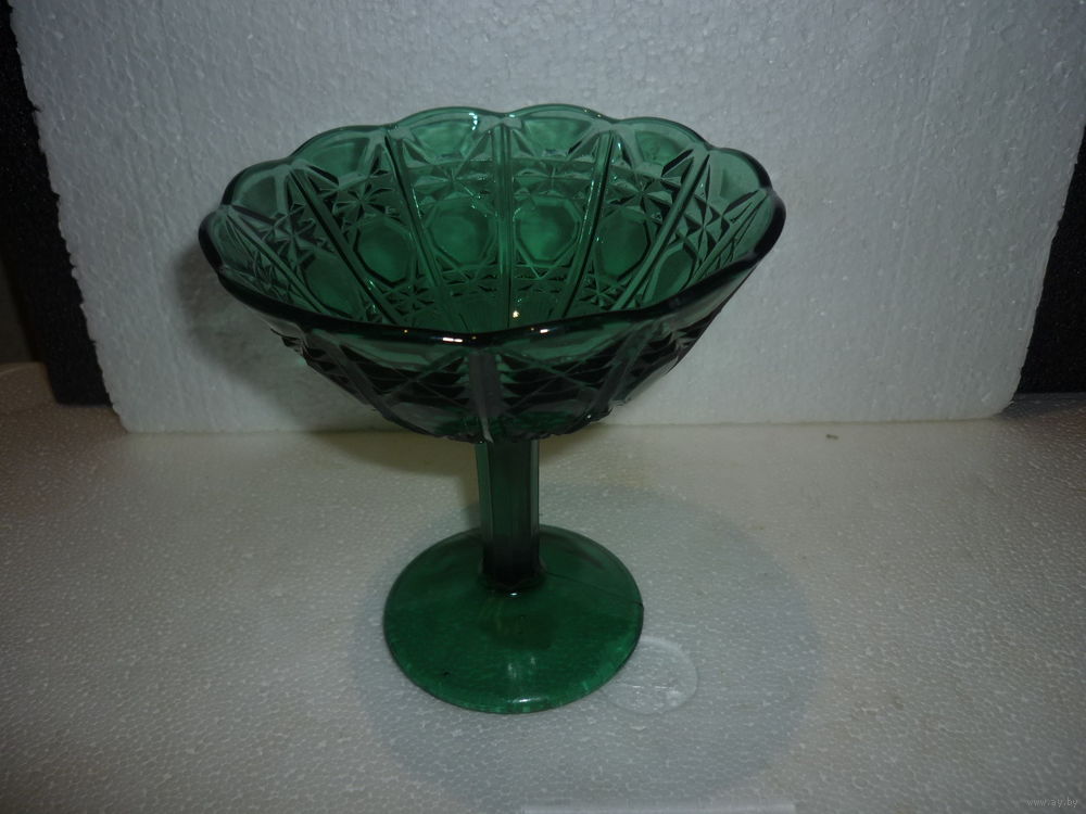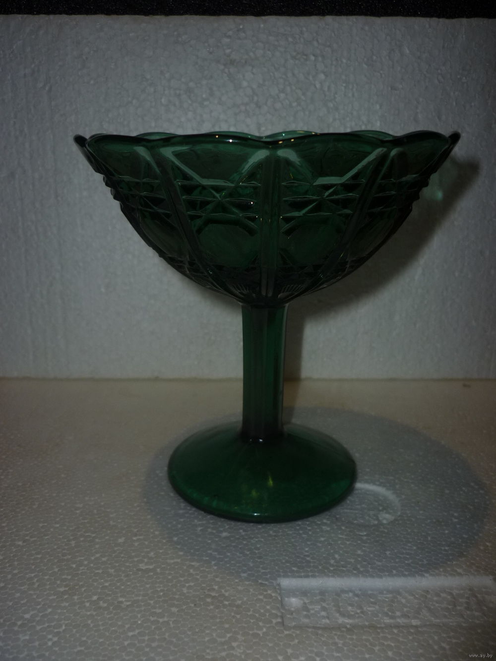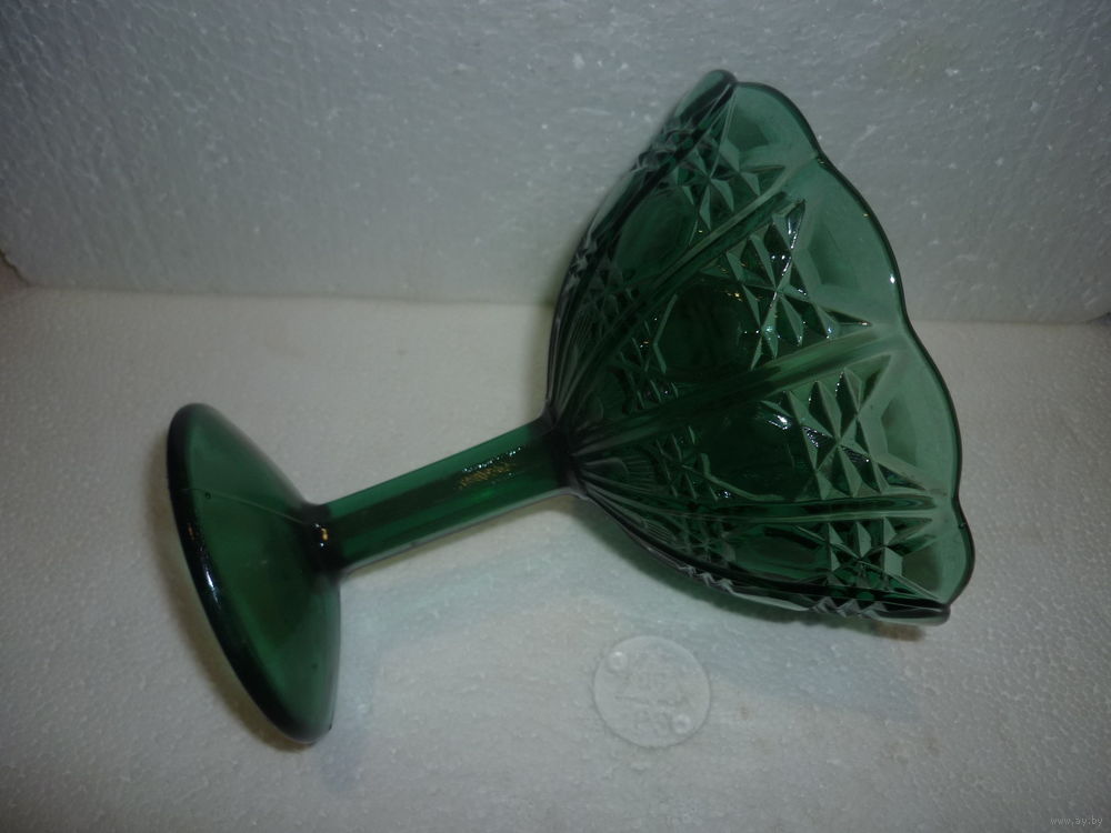 Ваза На Ножке. Нёман. Изумрудное стекло