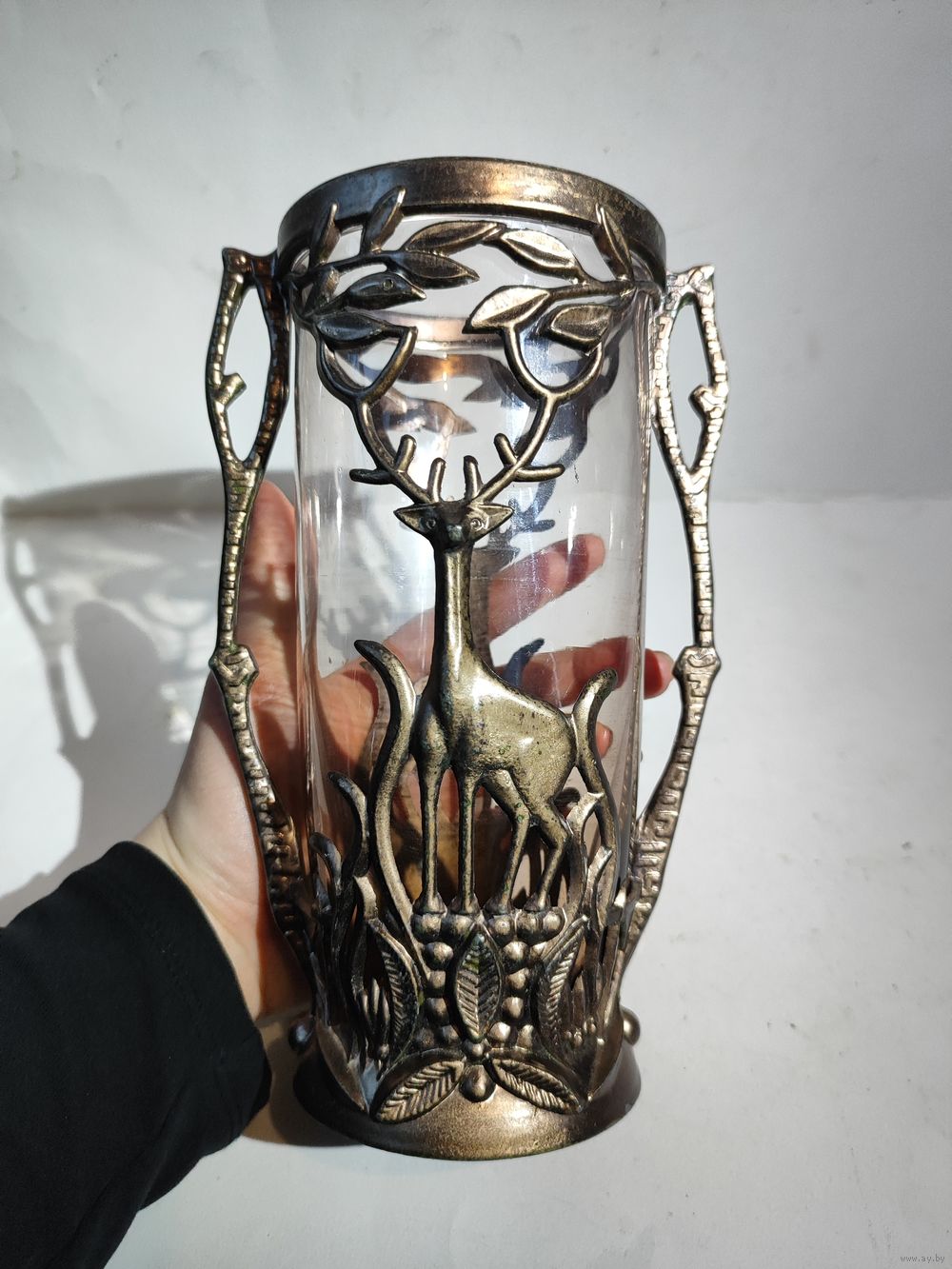 Времён СССР. Высота 21,5 см. Материал силумин ,стекло. Состояние на фото.