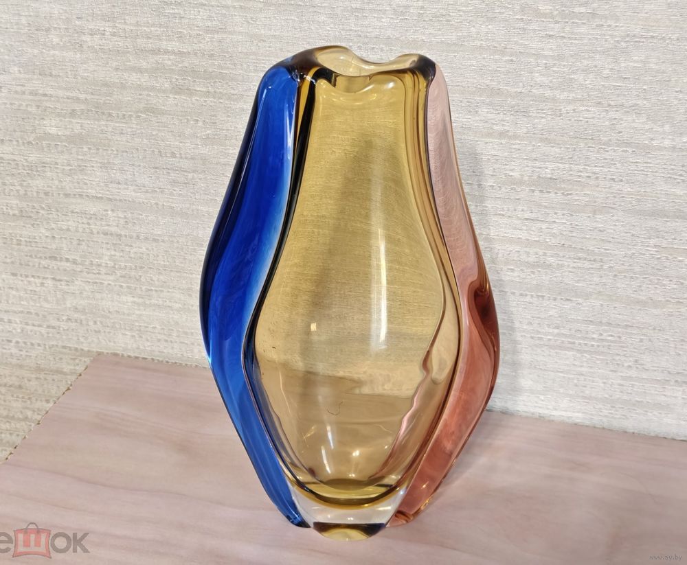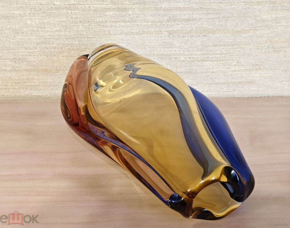 Ваза плоская, цветное стекло, серии Богемия, Чехия, период СССР (его распада), практически новая. Оригинальный дизайн, высота 24 см, наибольший размер ширины 14 см (по центру), размер горлышка 2,5х3 см, вес 1300 г. Украсит ваш интерьер при праздничных мероприятиях. Продаю в связи с ненадобностью реальному покупателю. Не торгуюсь и не меняюсь. Почтой не отправляю (даже не просите). Самовывоз площадь Казинца или личная встреча в районе метро Грушевка или Институт Культуры.