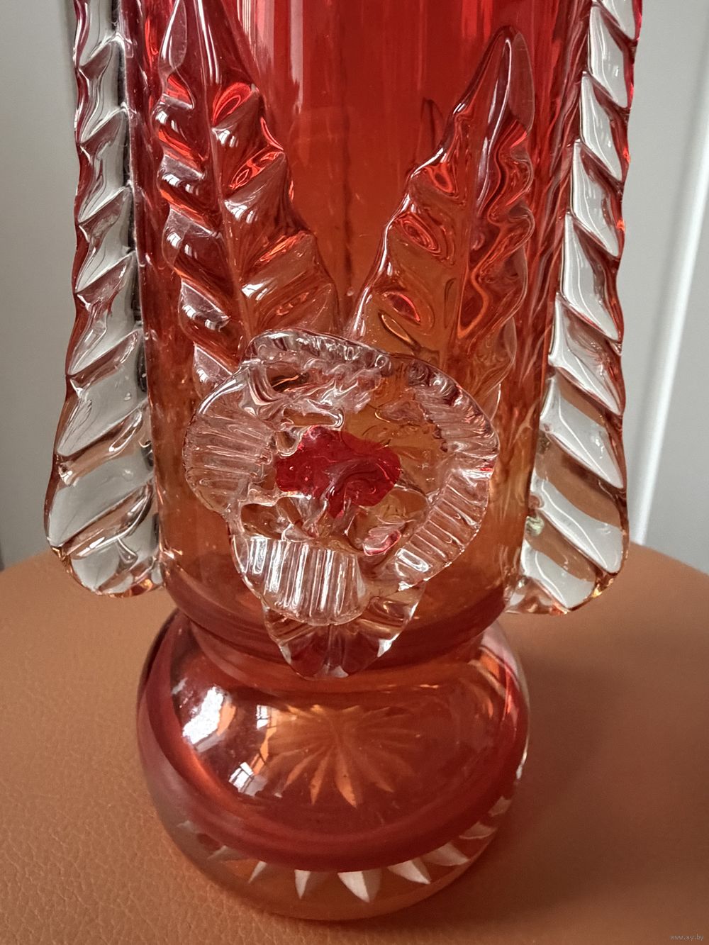 Продается очень красивая по цветовой гамме и сложная по дизайну винтажная ваза " Роза" одна из уникальных авторских, художественных работ заслуженного художника России Владимира Ивановича Бердникова . Первомайский Стекольный Завод СССР. Период создания вазы 1980 годы.СССР. Экземпляр есть в Государственном Каталоге Музейного Фонда РФ. Ручная работа выполнена в сложной гутной технике с налепами . Высота: 25 см, Диаметр горла: 9 см, Вес: 1680 гр. Ваза в идеальном состоянии.