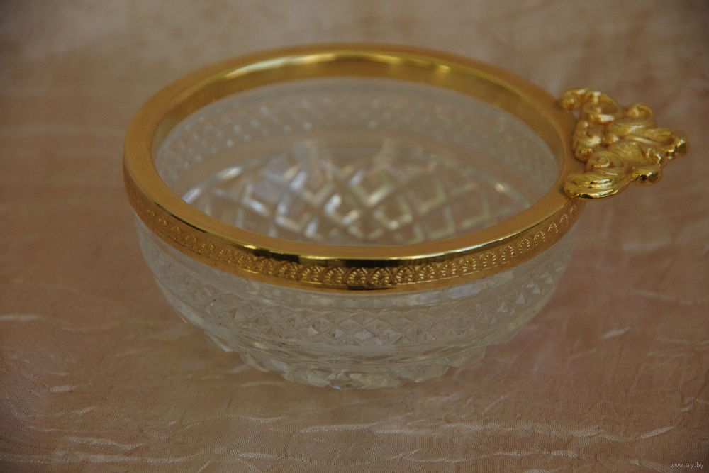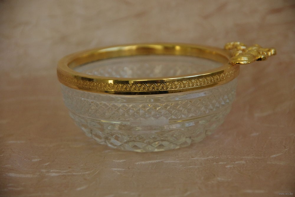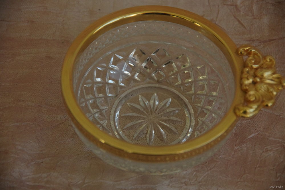 Ваза с золоченой каймой * диаметр 11 см , ширина 13,5 см , высота 5 см ) целая