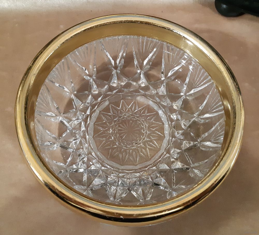 Ваза (сахарница, конфетница, менажница) хрустальная с жёлтым ободком, СССР