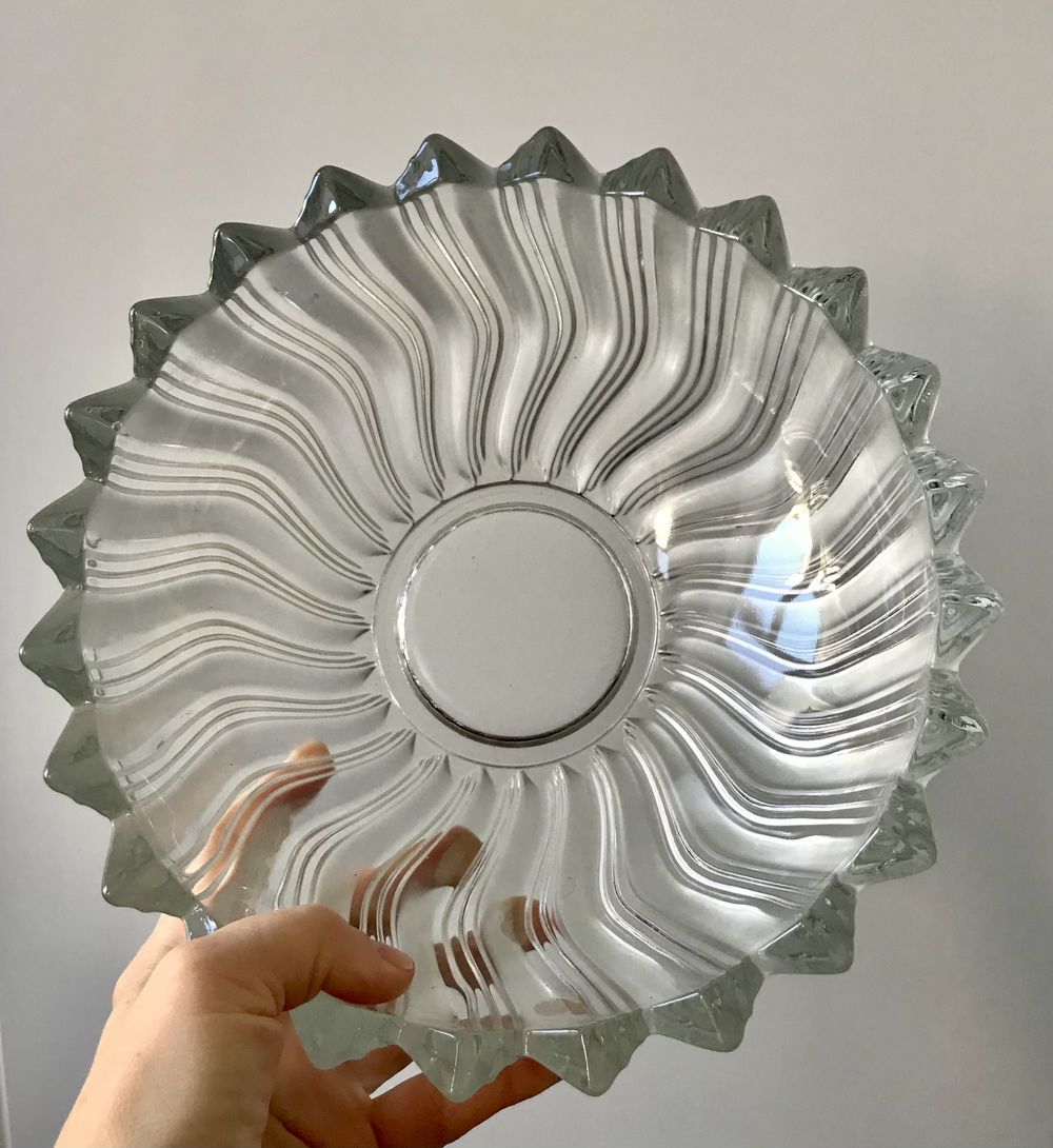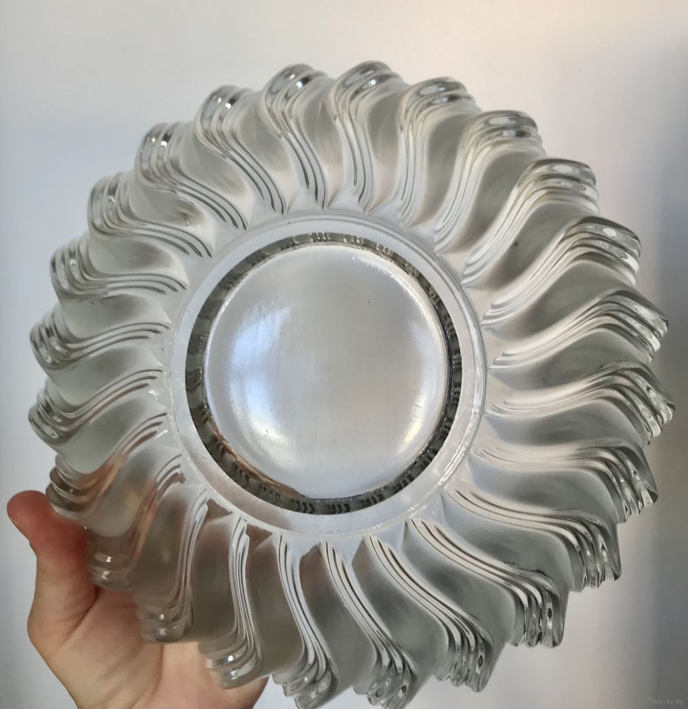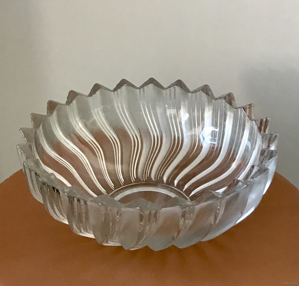 Ваза (салатник) из сатинированного прессованного хрусталя. Barolac Чехословакия 1960-1970-е гг. Автор Josef Inwald. Высота 9см., диаметр 23,5см. Тяжёленький. Состояние хорошее.