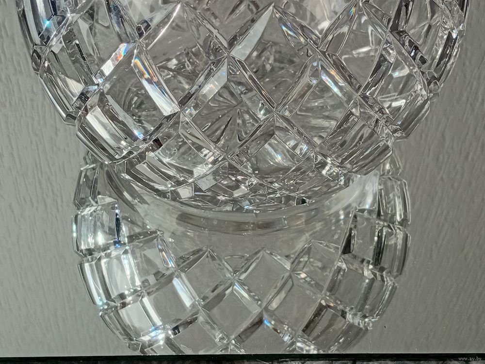 Глубокая алмазная грань. Изделие отличает прозрачность и бесцветность, мелодичный звон и уникальный блеск при солнечном свете.