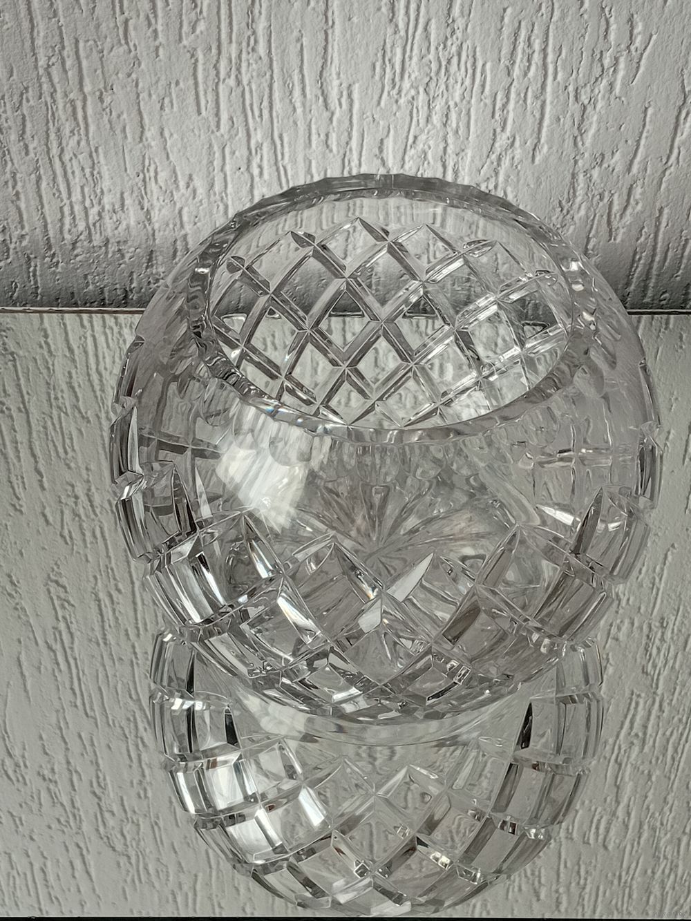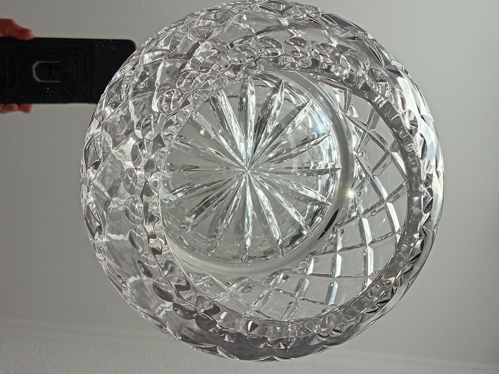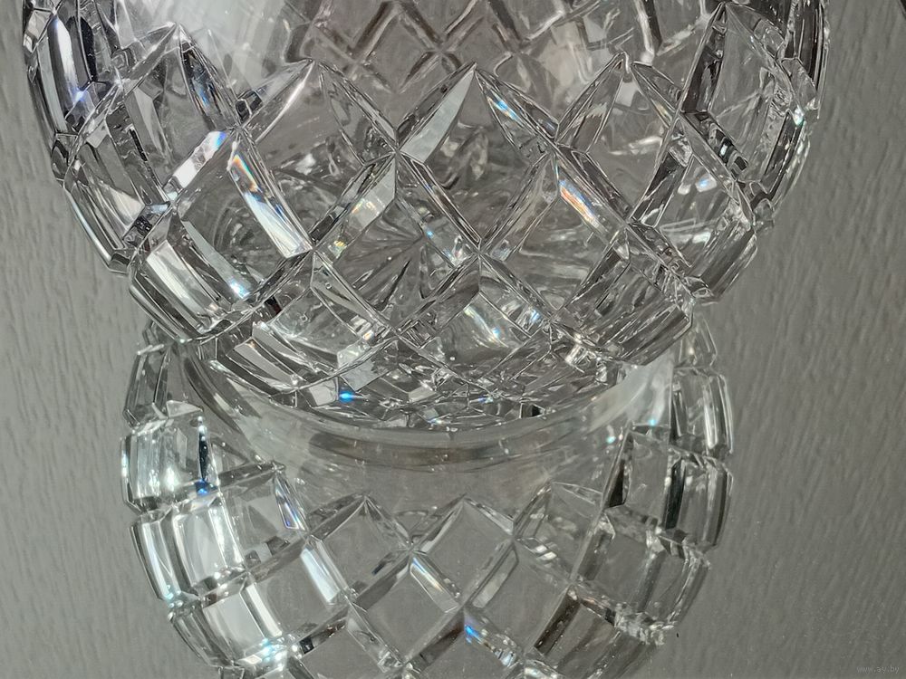 Глубокая алмазная грань. Изделие отличает прозрачность и бесцветность, мелодичный звон и уникальный блеск при солнечном свете.