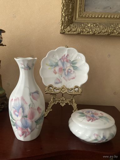Набор в спальню, есть еще лампа, костяной фарфор, ваза 17 см, шкатулка 10 см, тарелка 13 см , есть другие наборы этой серии, дорогая фирма английская Aynsley