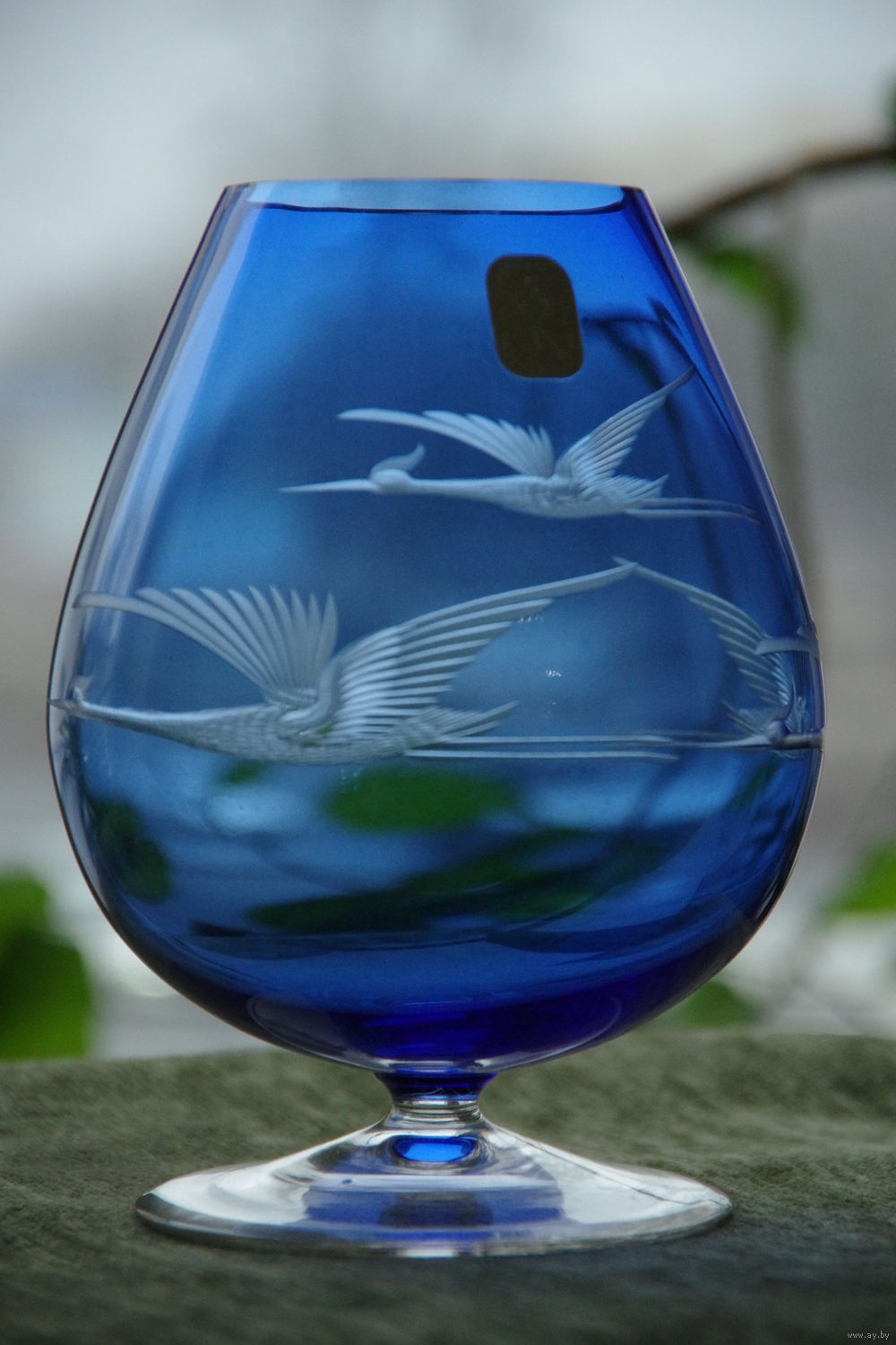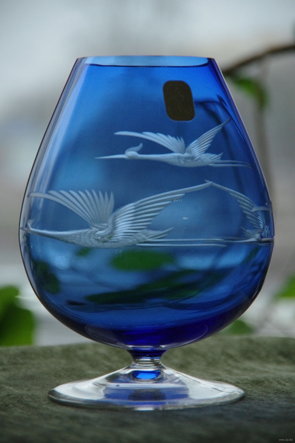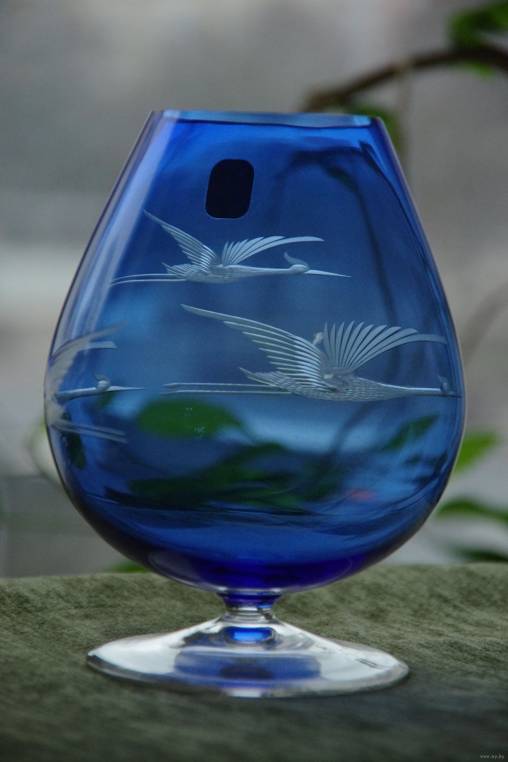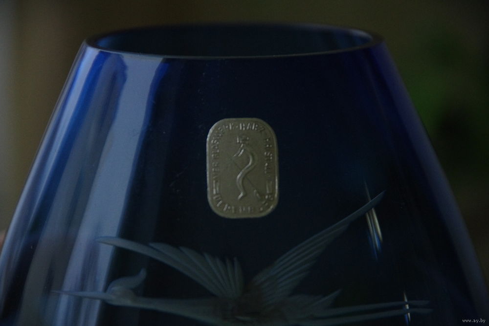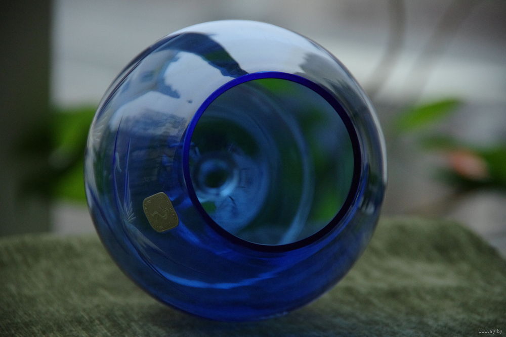 Ваза синее стекло ( высота 17,5 см , диаметр 12 см ; 7 см ( верх ) ) целая