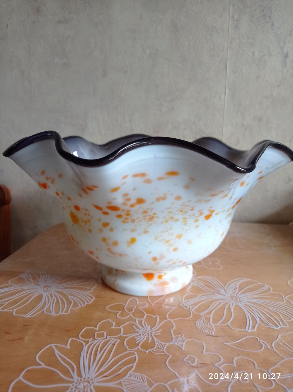 Красивая ваза в редком цвете, отличное состояние. Красный май, сульфидно-цинковое стекло. Диаметр 24 см, высота 14 см
