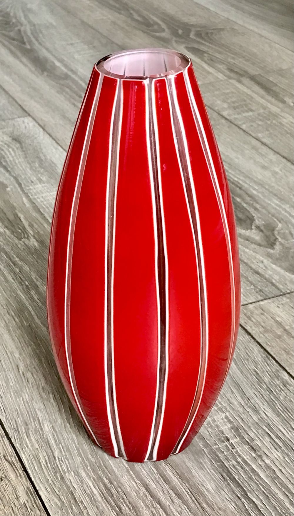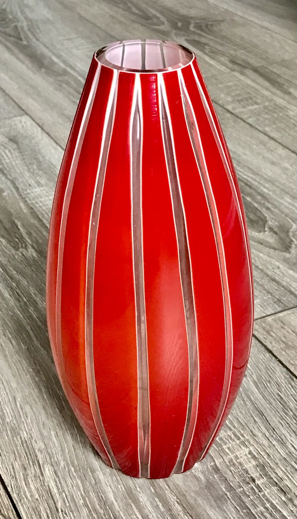 Ваза из трехслойного стекла. Неман 60-е гг. Высота 25см., диаметр отверстия 5см. Состояние хорошее. Редкая.