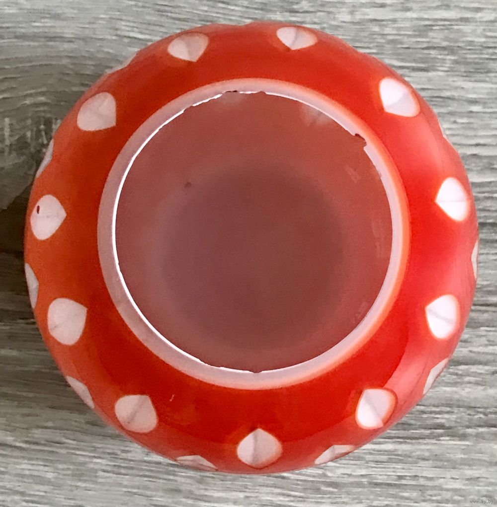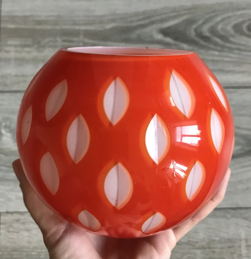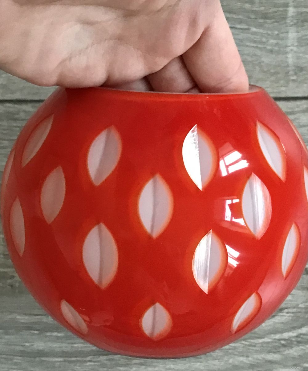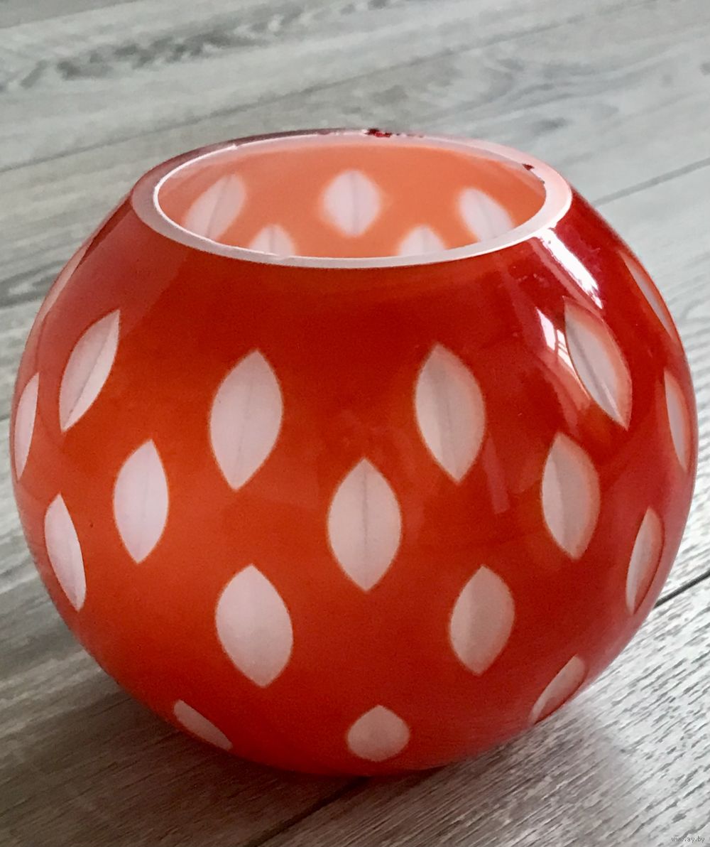 Ваза из трехслойного стекла. Неман 50-е гг. Автор Л.Мягкова. Высота 11,5см. диаметр отверстия 7см. По краю имеются небольшие сколы.