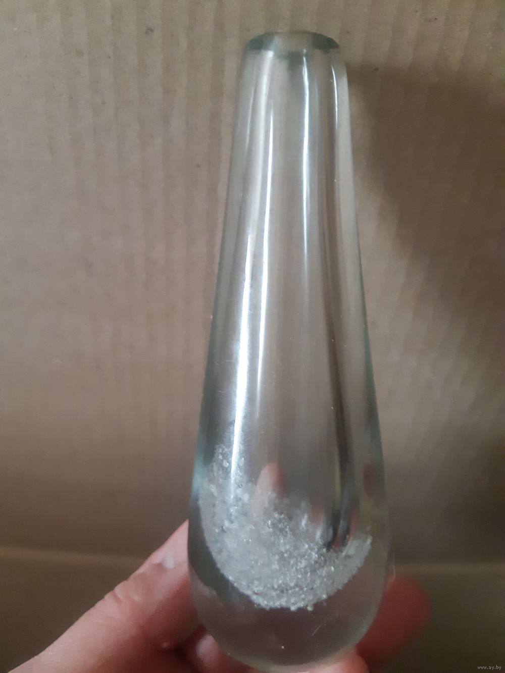 Высота 14 см, вверху нюанс, смотрите фото, малозаметно. Вазочка интересная слиток стекло, тяжелая.