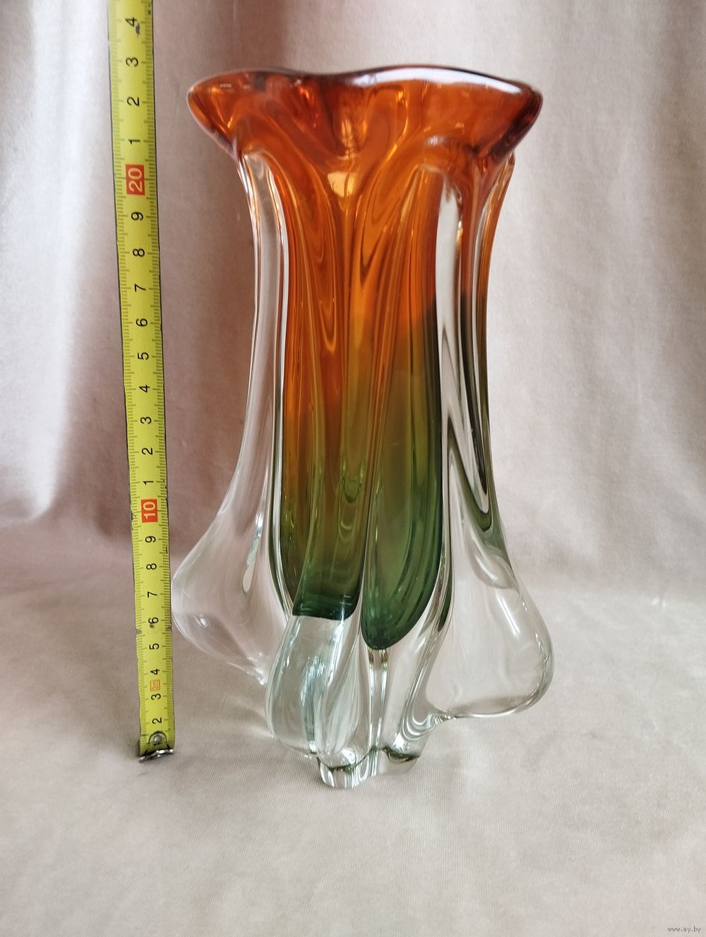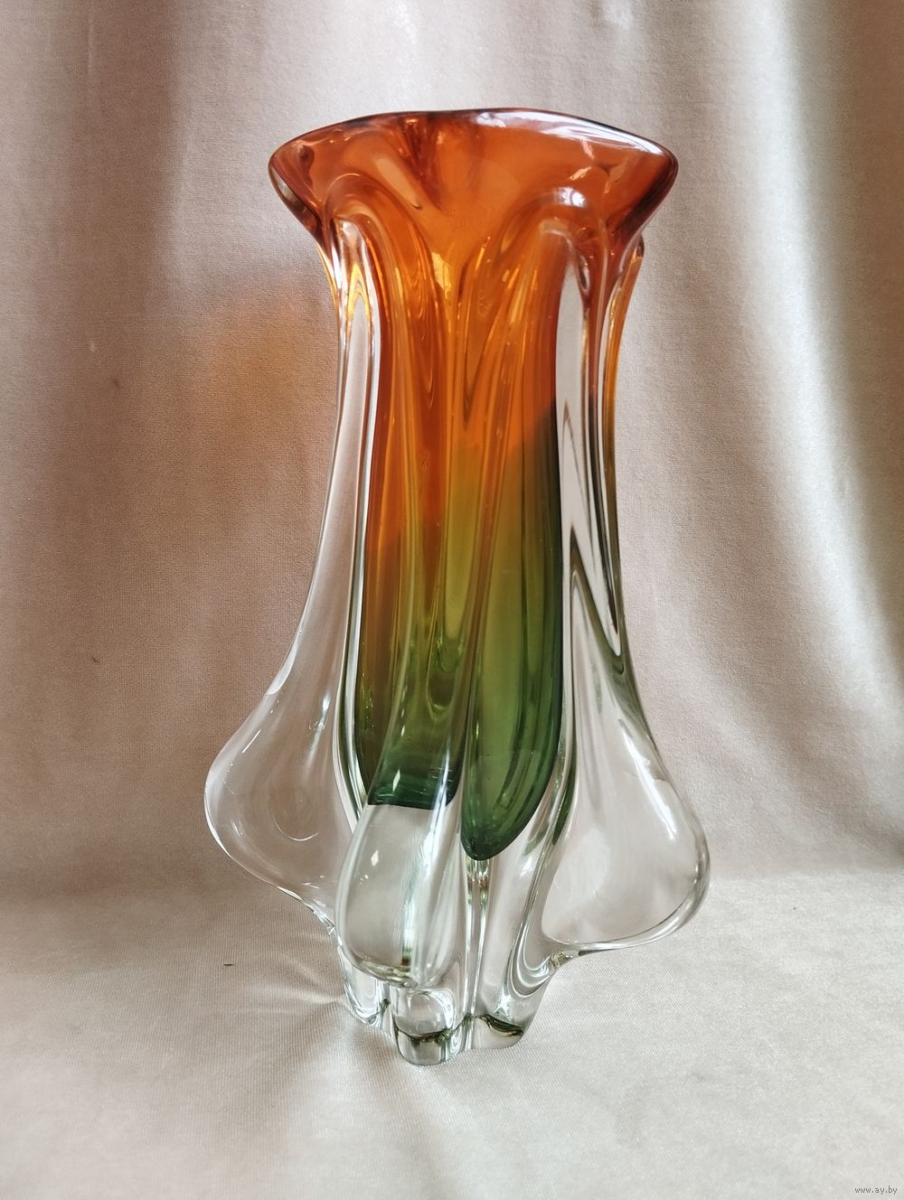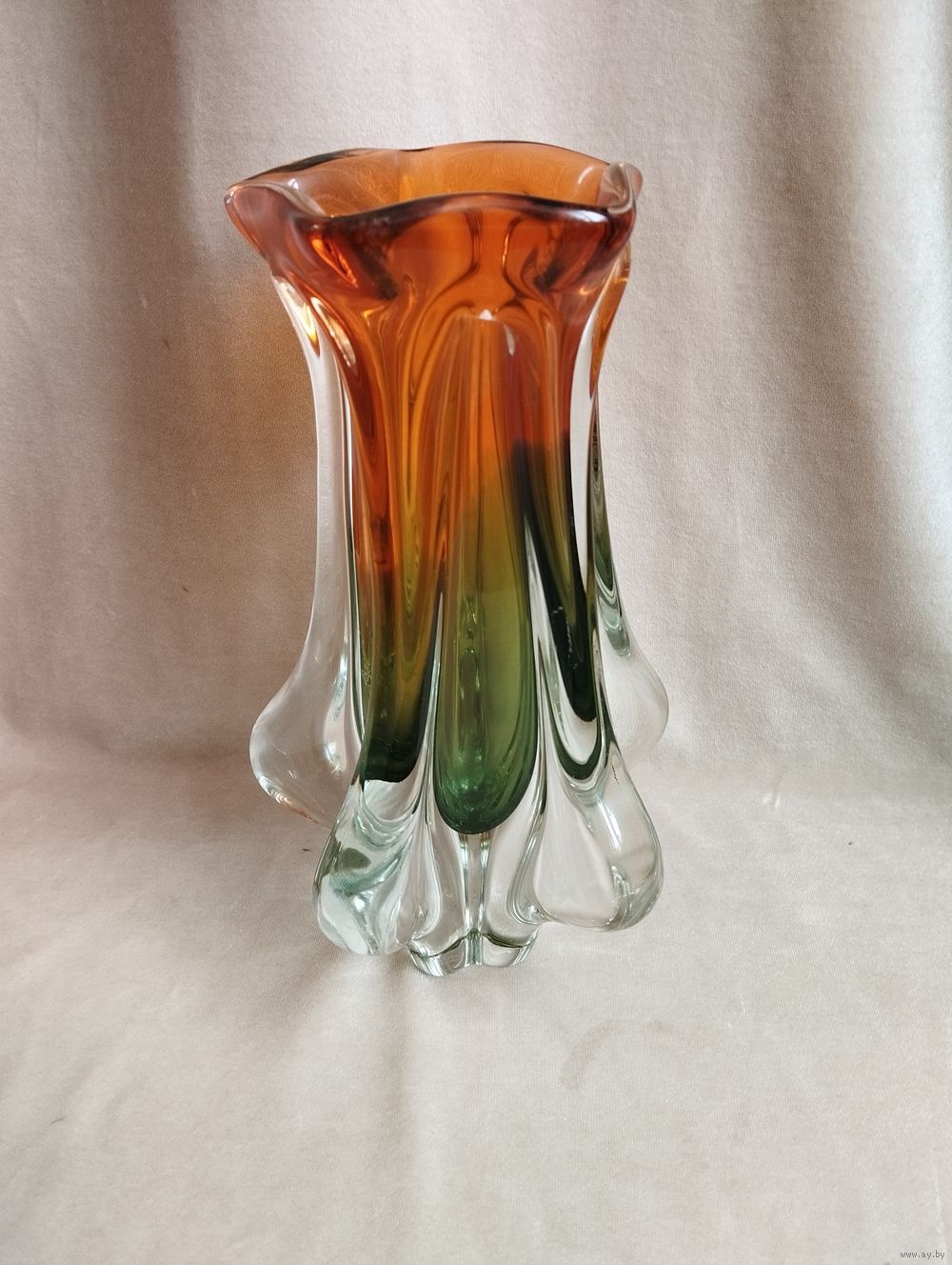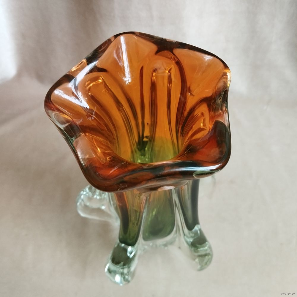 Ваза Возрождение (высота 22 см), гутная техника. Чехословакия