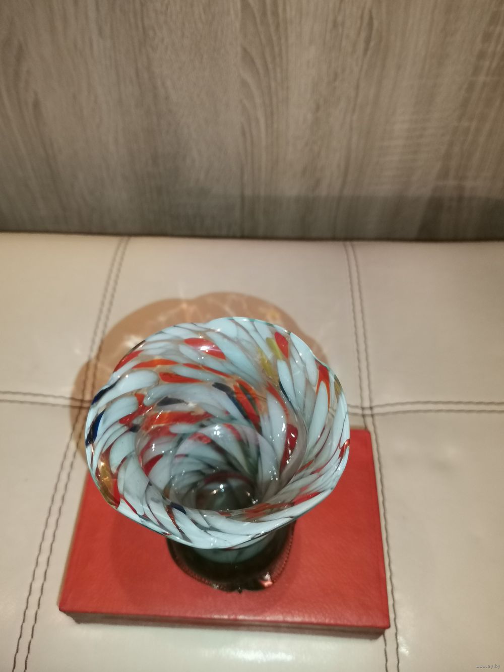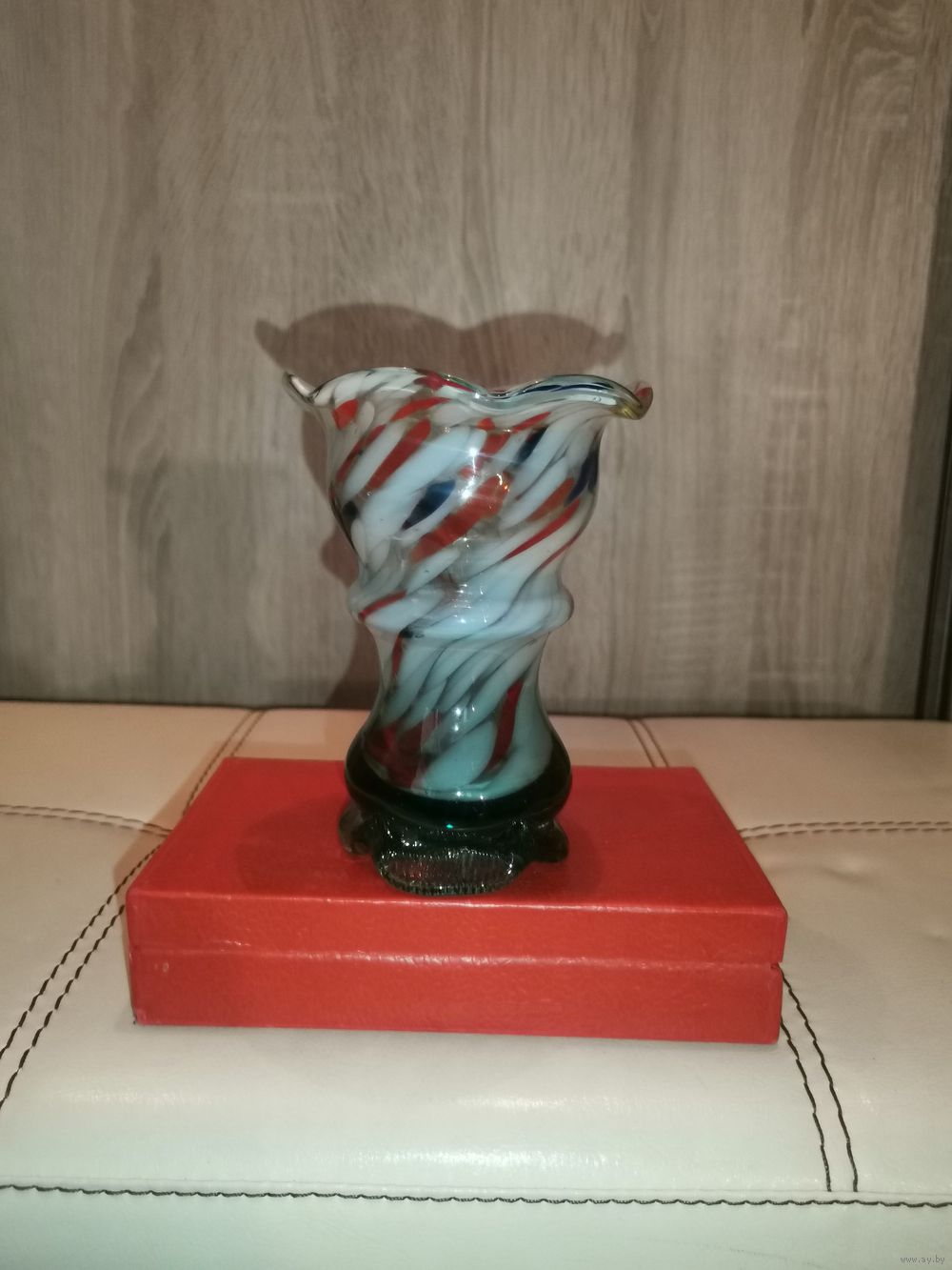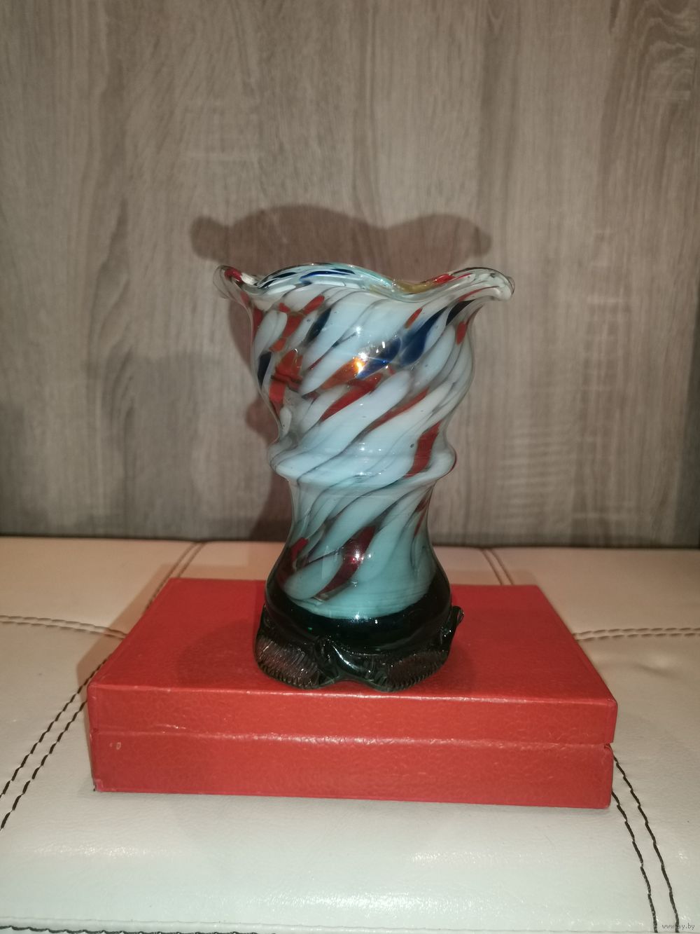 Вазочка для цветов из цветного стекла, высота 13 см., времён СССР.