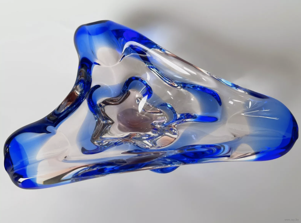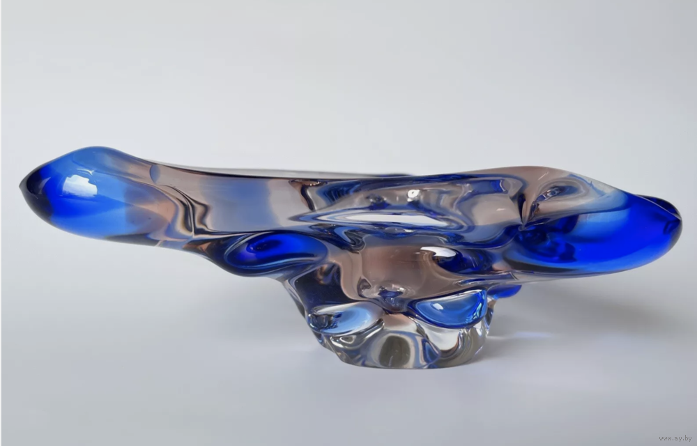 Вазочка для мелочей конфетница Чехословакия цветное стекло винтаж