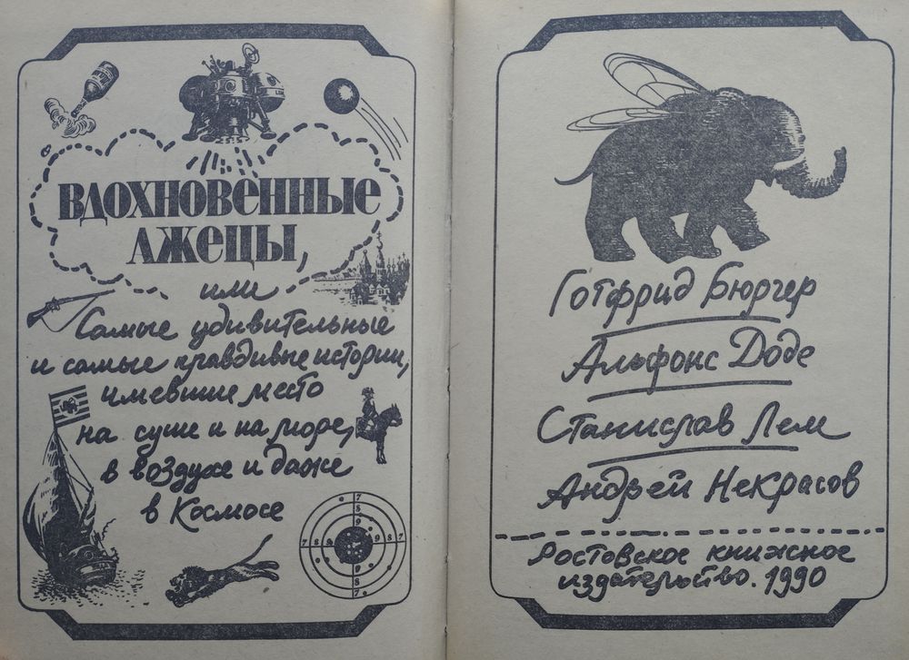 Антология вымышленных приключений (жанр небылиц и приключенческой сатиры), объединяющий классических литературных героев-фантазеров: Барона Мюнхаузена (Р. Э. Распе), Тартарена (А. Доде), капитана Врунгеля (А. Некрасов) и Ийона Тихого (С. Лем).