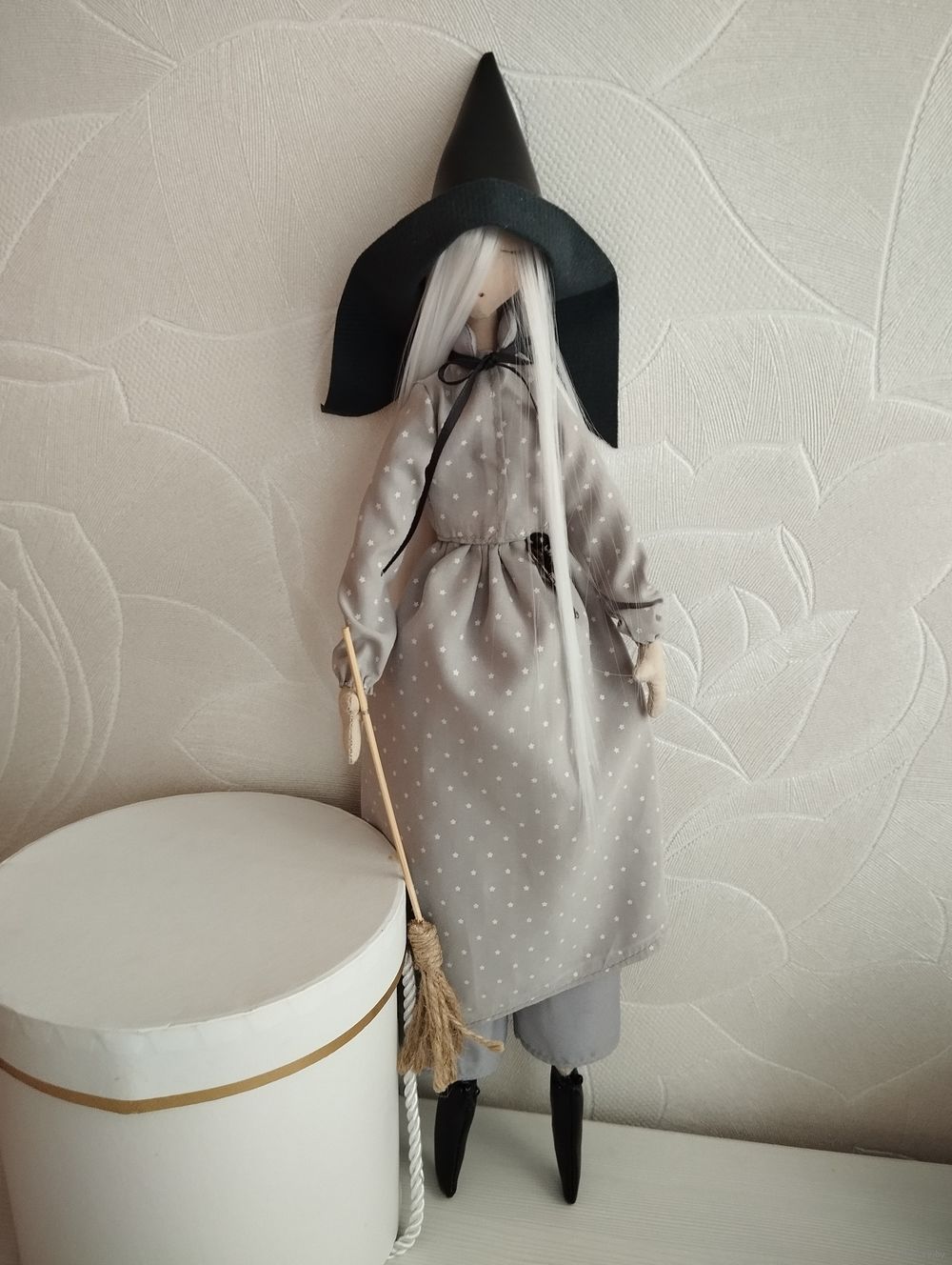 Ведьмочка Карла куколка ручной работы из текстиля высота 40см без шляпки