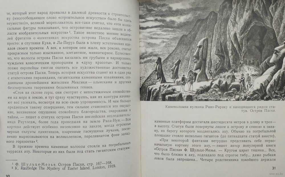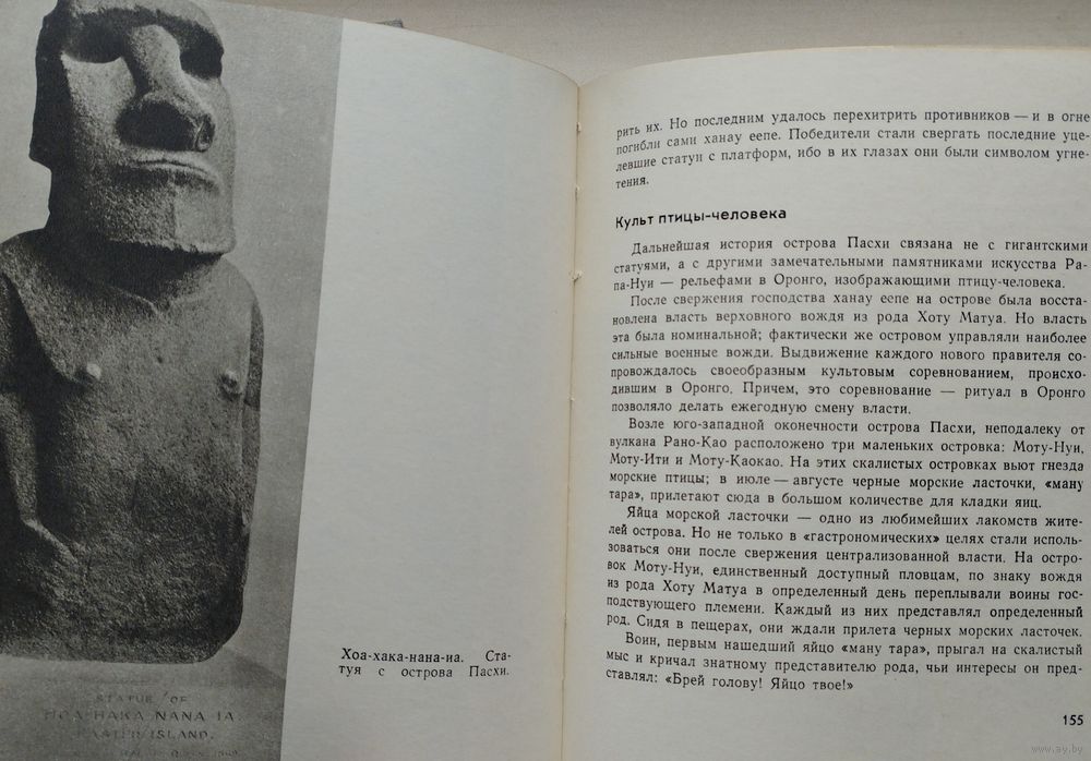 192 стр. О гигантских статуях и маленьких скульптурах, о наскальных росписях и других удивительных памятниках острова Пасхи, о новейших находках и гипотезах, о загадках искусства Рапа-Нуи рассказывает книга советского ученого А. М. Кондратова.