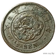 ВЕЛИКАЯ ЯПОНСКАЯ ИМПЕРИЯ. 1/2 СЕНА 1877 г. Муцухито (Мэйдзи). ДРАКОН III ТИПА.