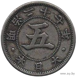 ВЕЛИКАЯ ЯПОНСКАЯ ИМПЕРИЯ 5 СЕНОВ 1894. Муцухито (Мэйдзи). НЕЧАСТАЯ