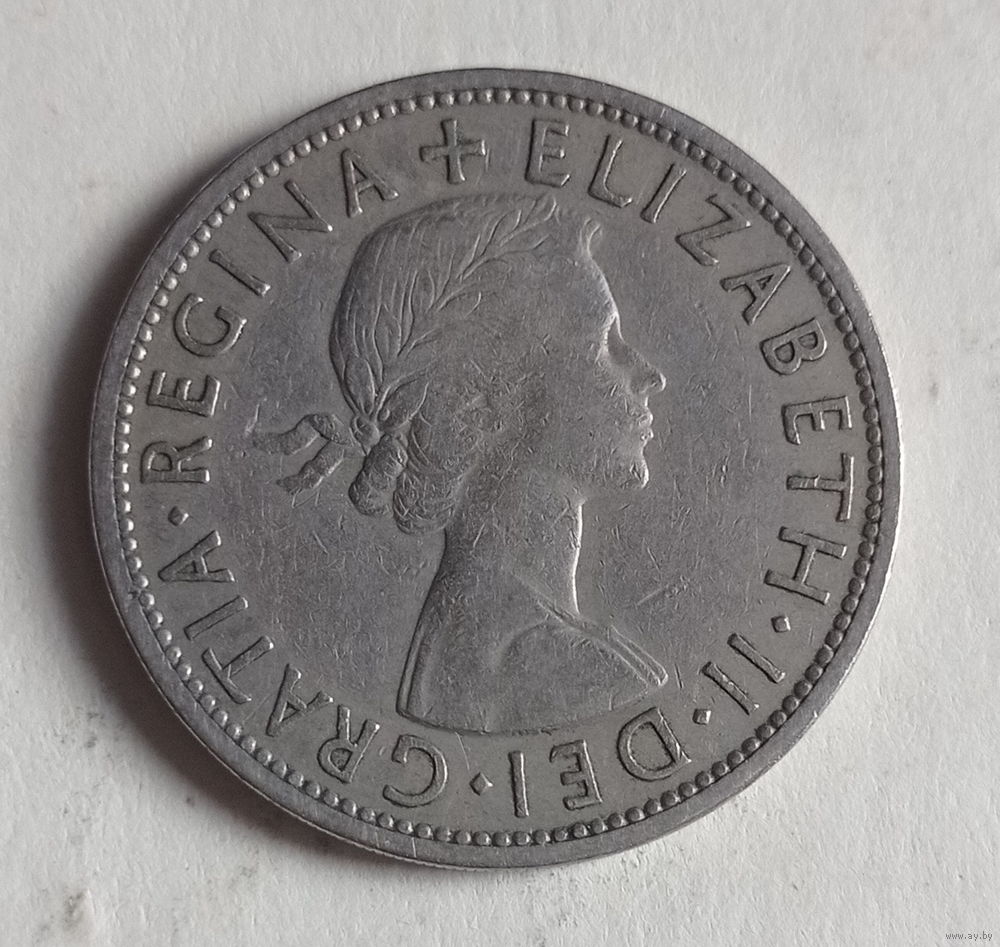 Великобритания 1/2 кроны 1957 год королева Елизавета II нечастый год