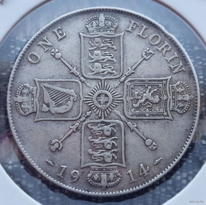 Великобритания 1 флорин 1914 года, UNC. Герб. Король Георгий V. Холдер. Серебро 925! Сторгуй за свою цену, предложи обмен!