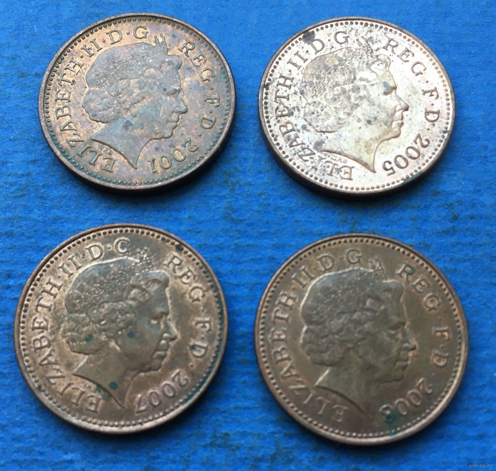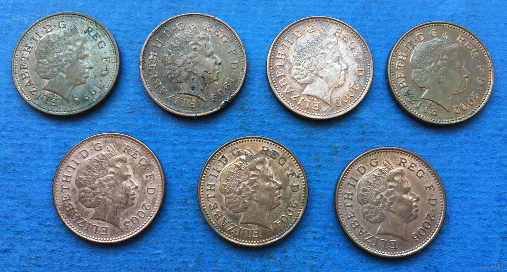 Великобритания 1 пенни 1998, 1999, 2000, 2001, 2002, 2003, 2004, 2005, 2006, 2007, 2008