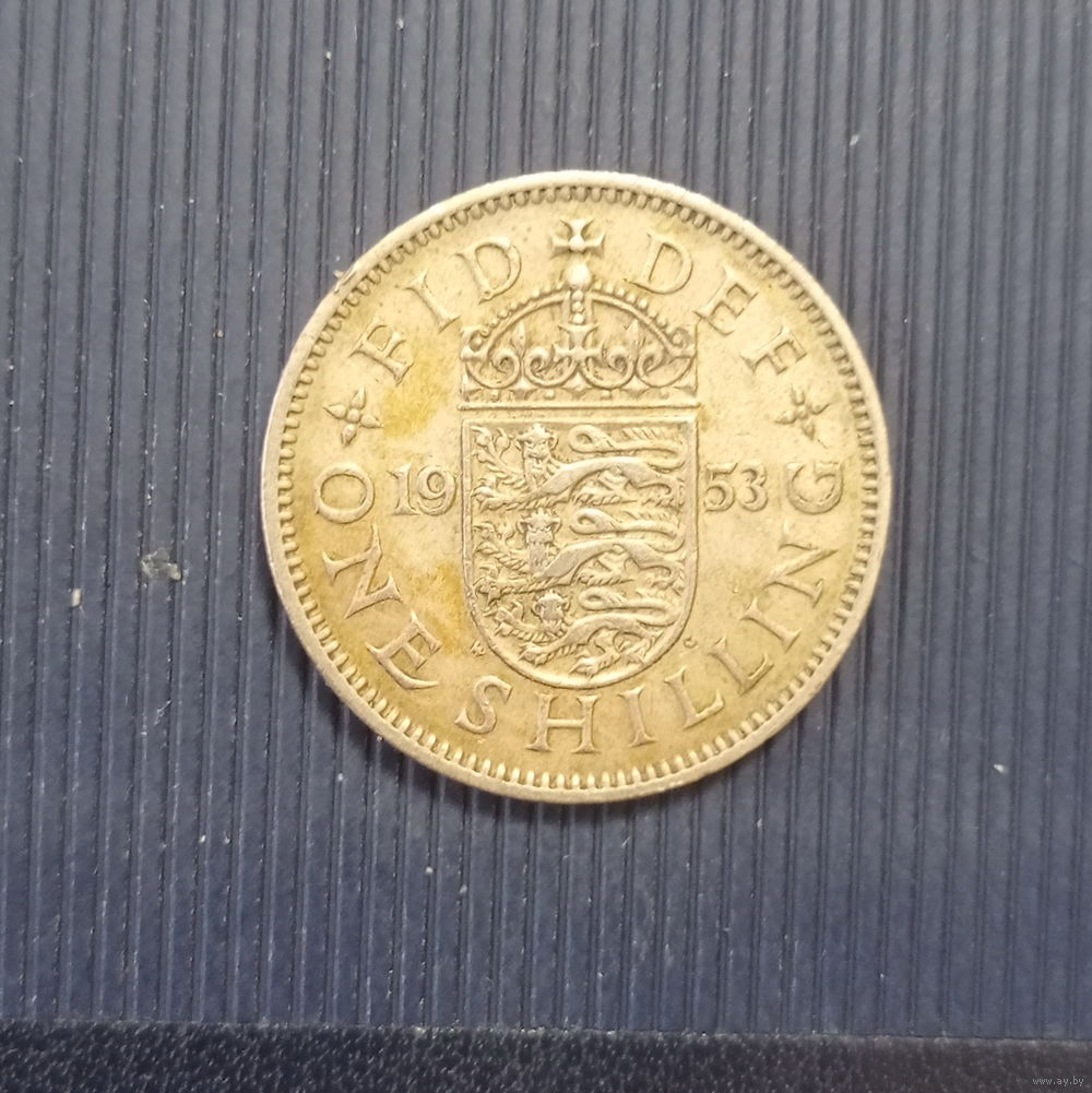 Великобритания 1 шиллинг 1953 год английские львы на щите коронация королевы Елизаветы длинная легенда вокруг портрета единственный год чекана