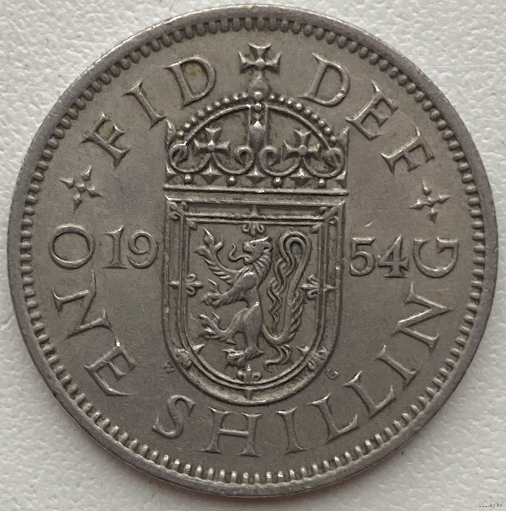 Великобритания 1 шиллинг 1954 г. Шотландский герб. Атакующий лев внутри коронованного щита