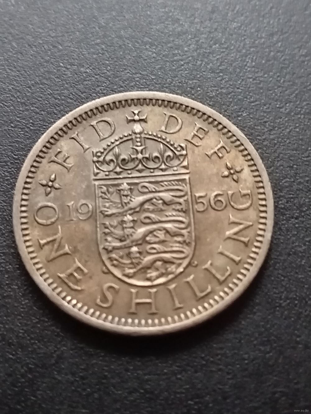 Великобритания 1 шиллинг 1956 г. - Английский герб - 3 льва внутри коронованного щита