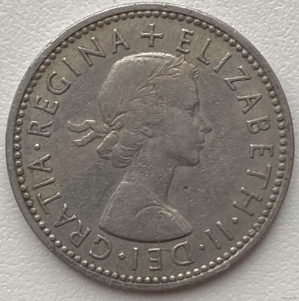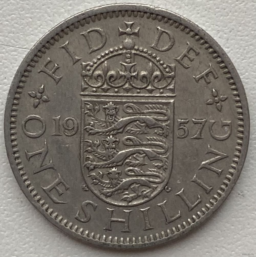 Великобритания 1 шиллинг 1957 г. Английский герб. 3 льва внутри коронованного щита