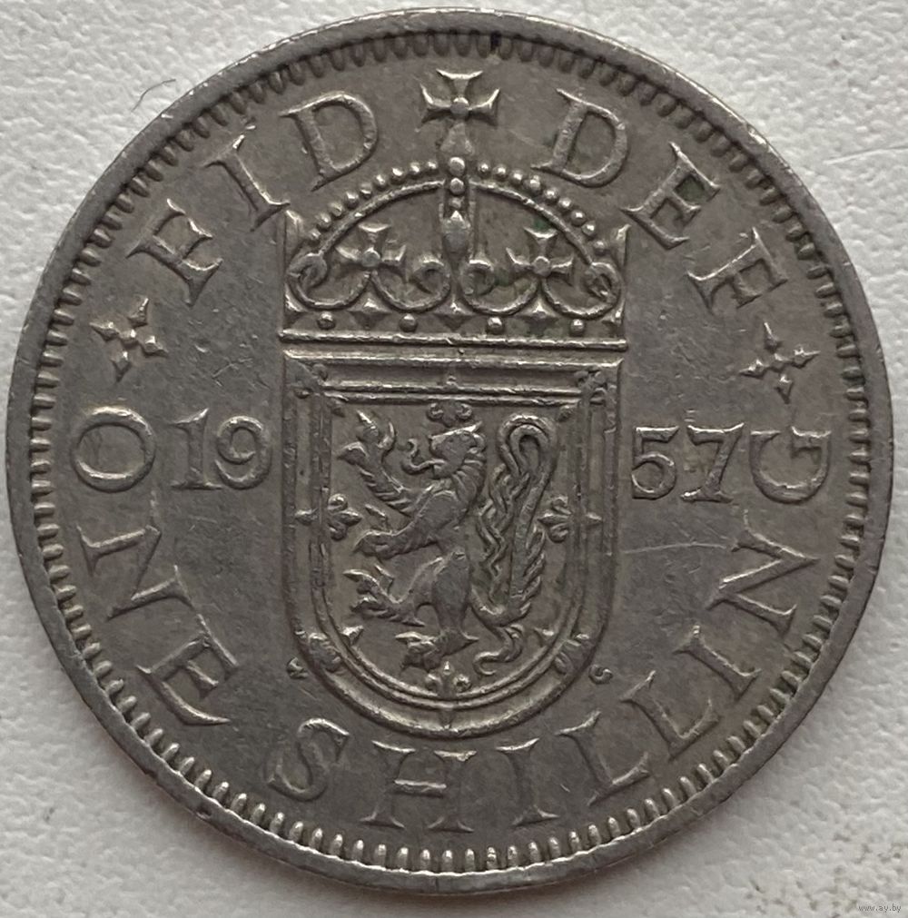 Великобритания 1 шиллинг 1957 г. Шотландский герб. Атакующий лев внутри коронованного щита