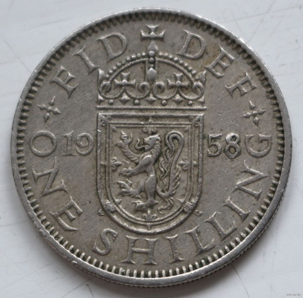 Великобритания 1 шиллинг 1958 год "Шотландский герб - атакующий лев внутри коронованного щита"