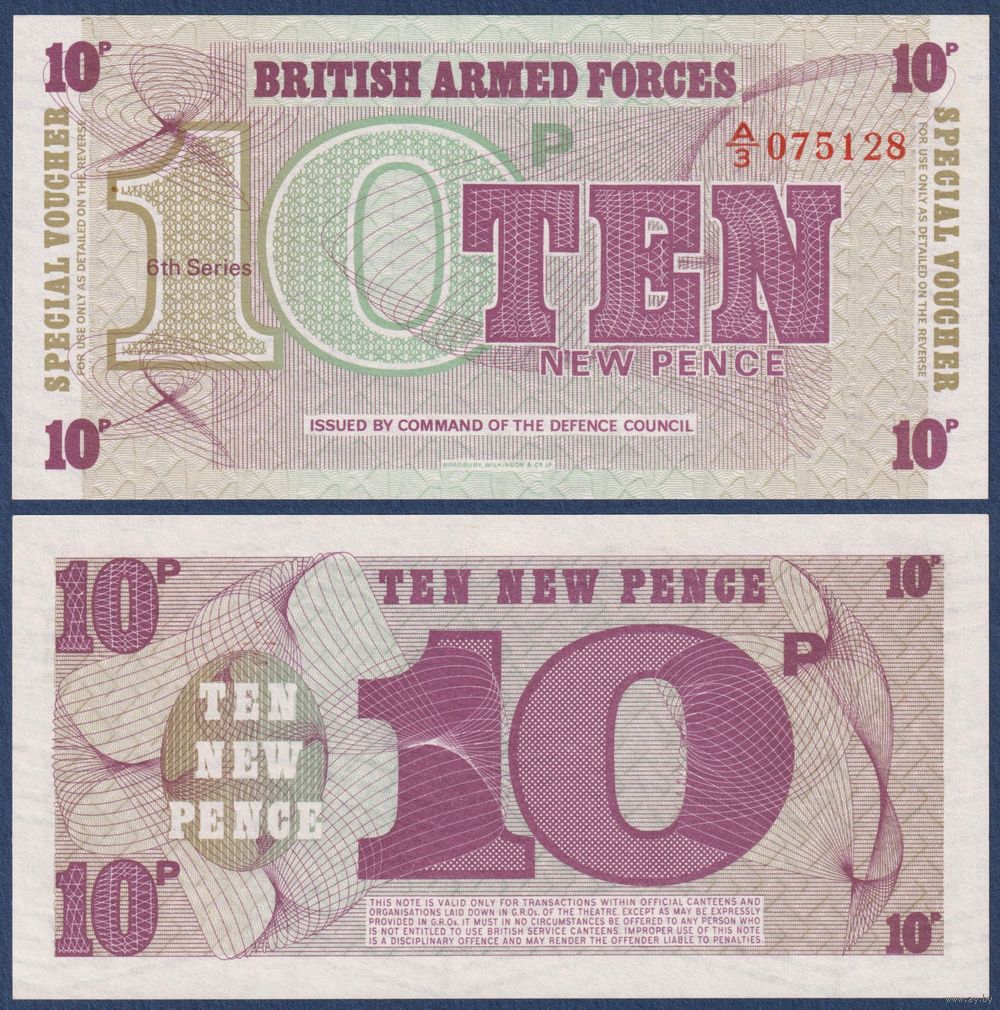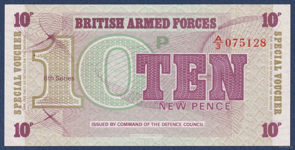 Великобритания, 10 пенсов 1972 г., M-48 (A, армейский ваучер, 6th series), UNC