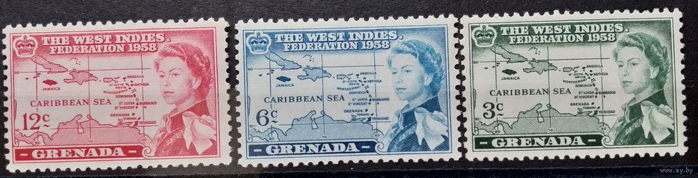 Великобритания\126в\ Гренада, 1958, Елизавета II, образование Федерации Вест-Индии. Карта
