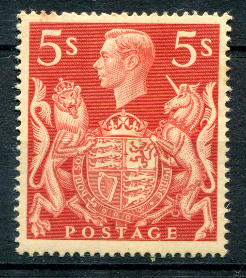 Великобритания - 1939г. - король Георг VI, герб, 5 Sh - 1 марка - MLH с жёлтыми пятнами [Mi 213]. #3-WK-88-A-1