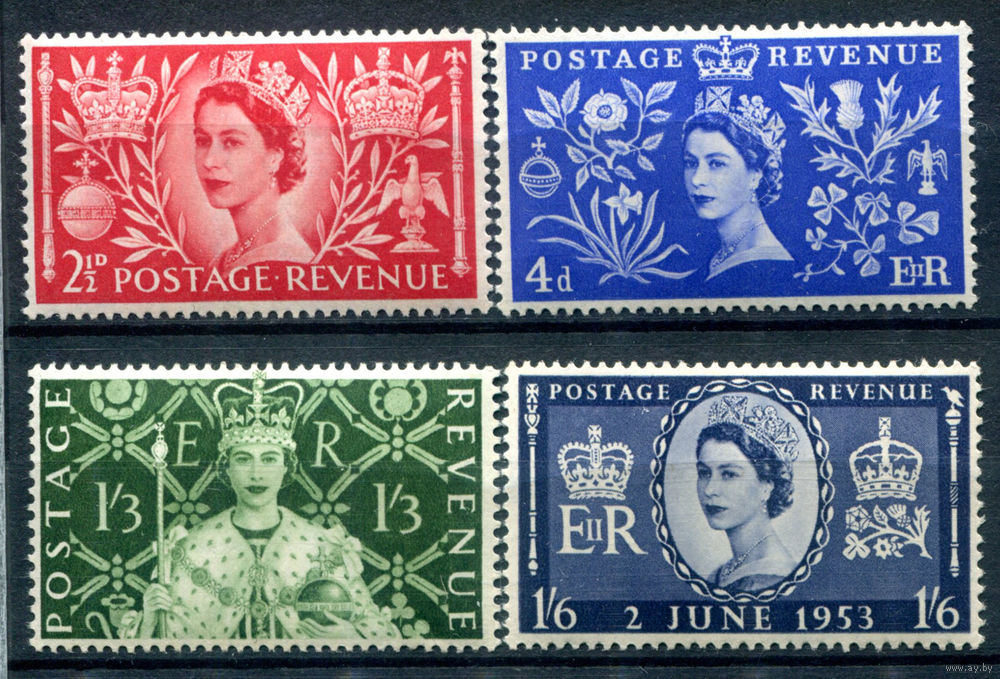 Великобритания - 1953г. - коронация королевы Елизаветы II - 4 марки - полная серия, MNH [Mi 274-277]. #3-GB-99-B-1